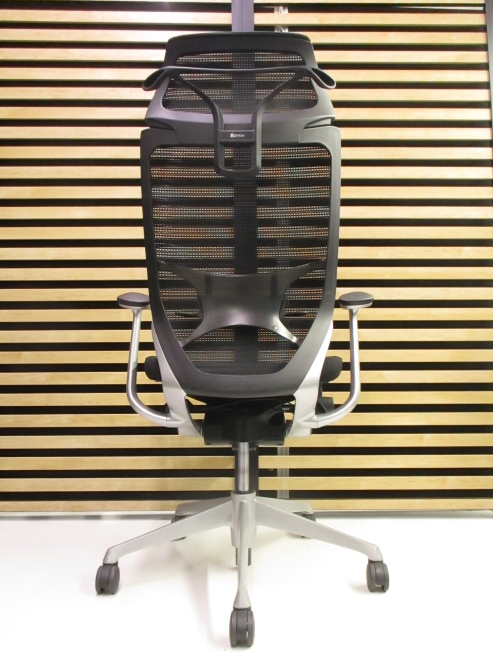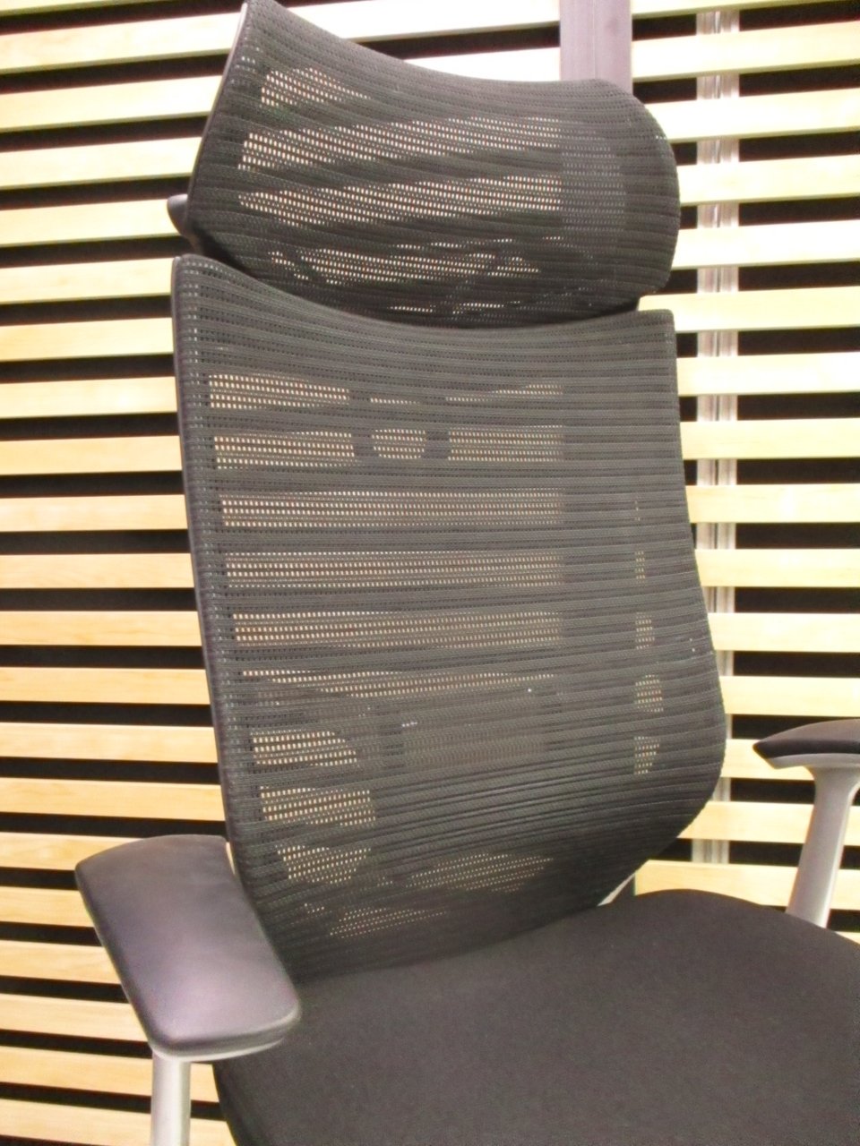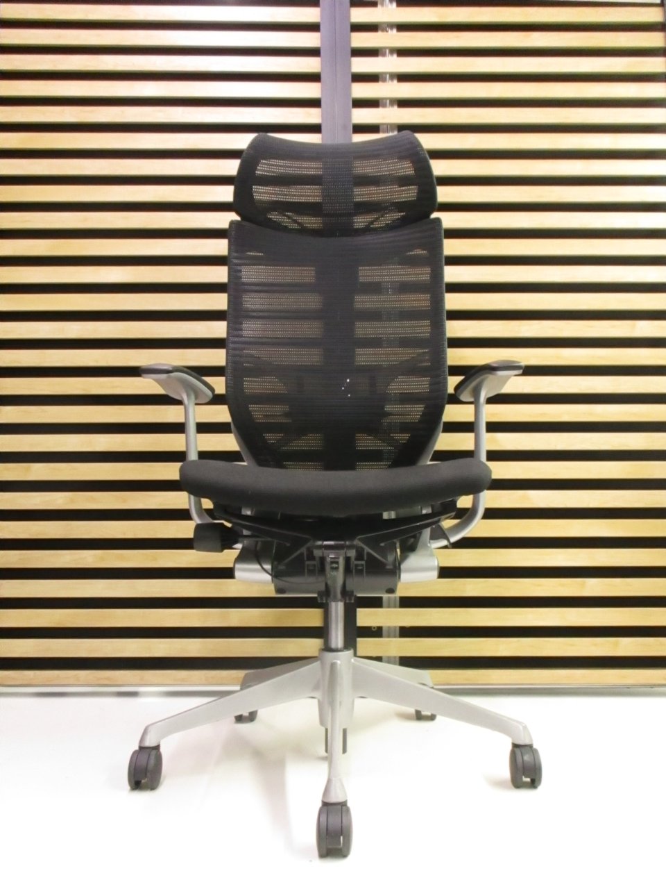 【オフィスの執務室、会議室におすすめ!】■オカムラ(okamura)製 バロン(Baron)チェア 肘付き ハイバック ■背・座面メッシュ ■可動肘 ■ヘッドレスト付き ■ブラック【硬めの座面が大人気!国産メッシュチェアの代表格!】