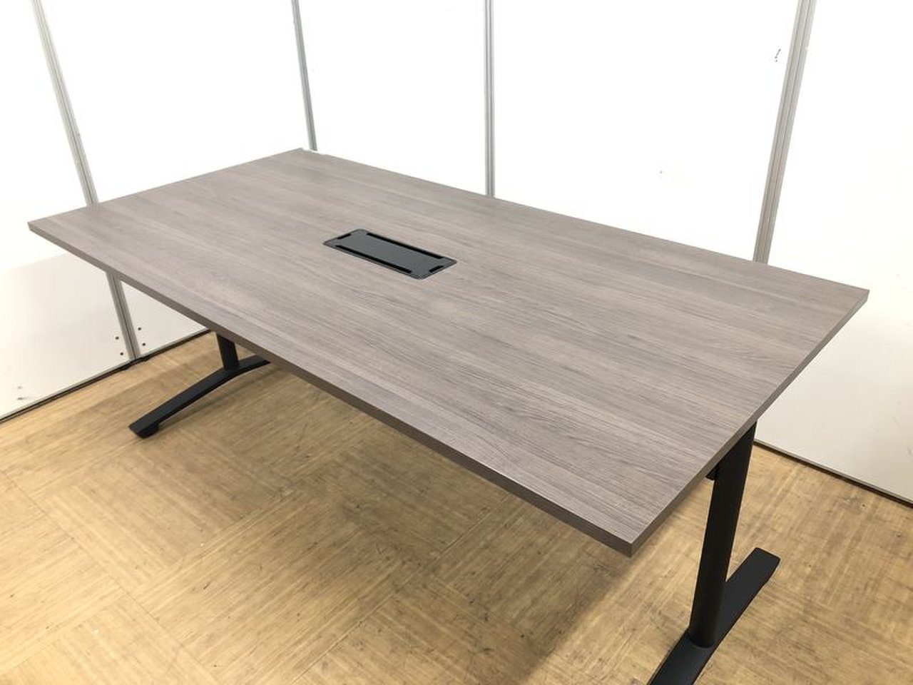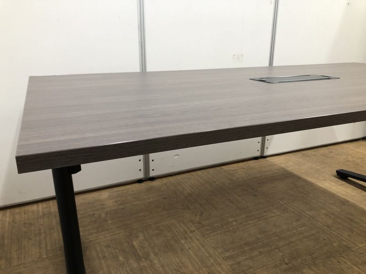 【トレンドカラーのアッシュブラウン天板】配線ダクト付きで配線もスッキリ!ワークテーブルにも使える6人掛けサイズのミーティングテーブル- 名古屋本店