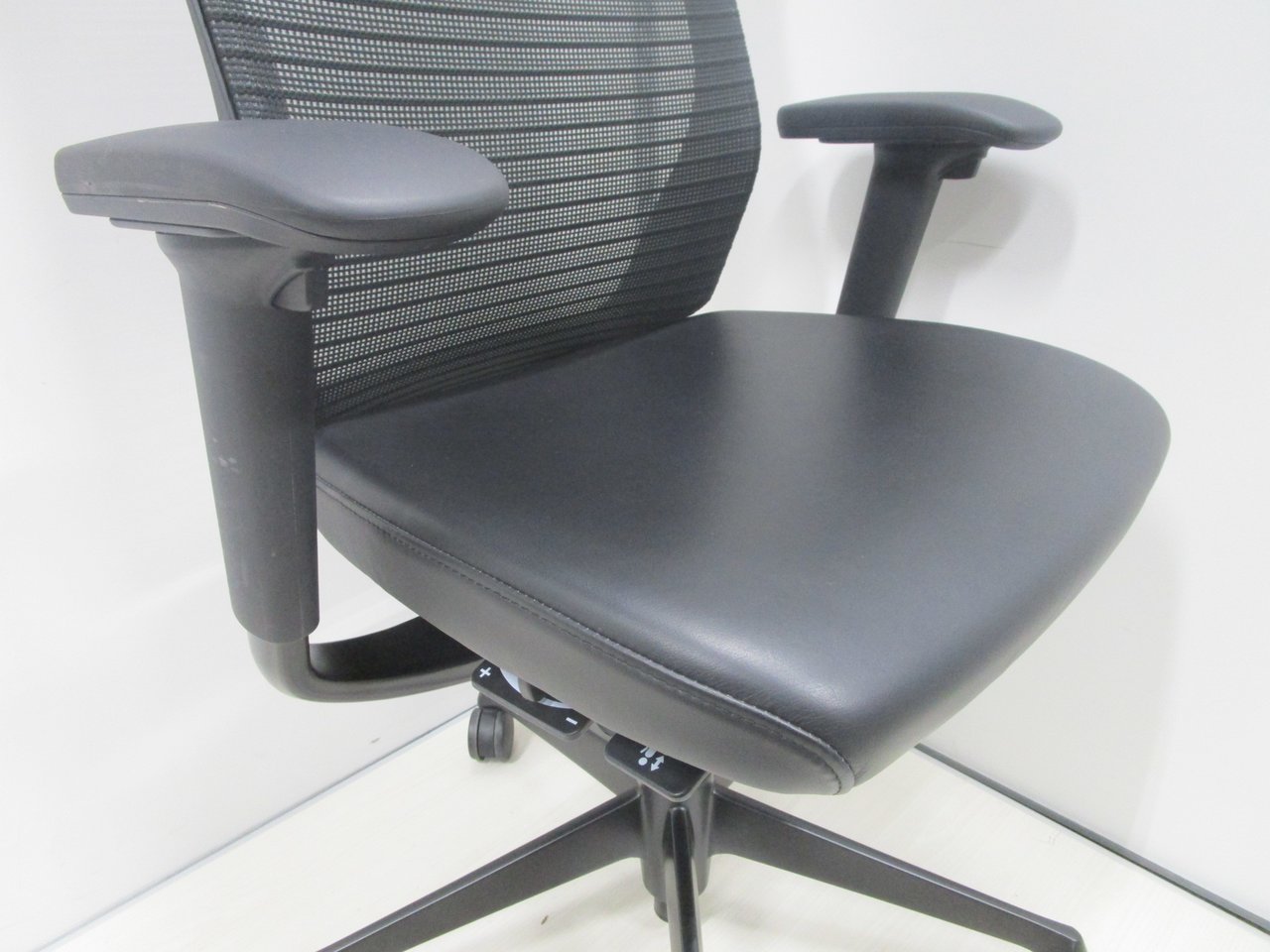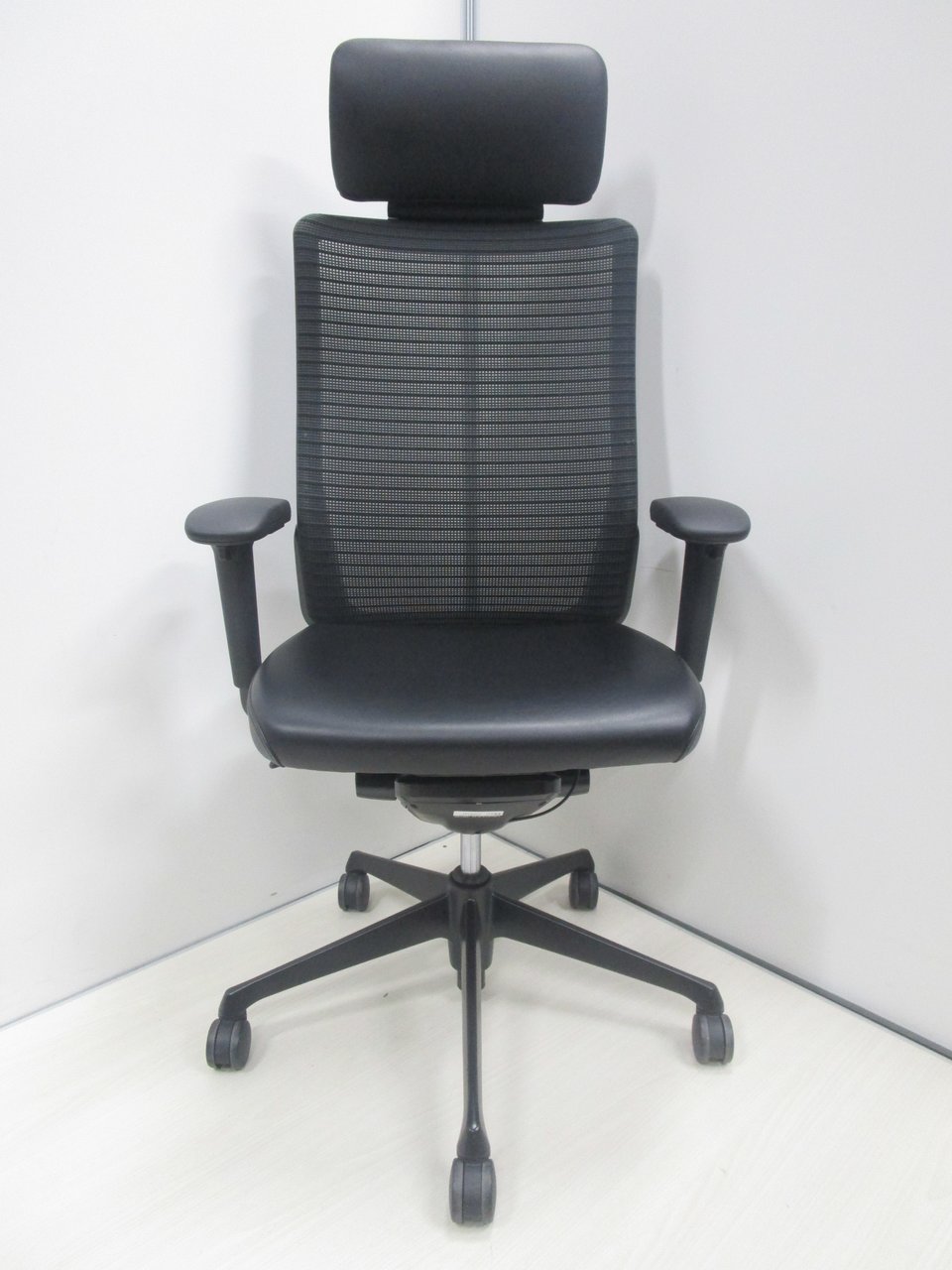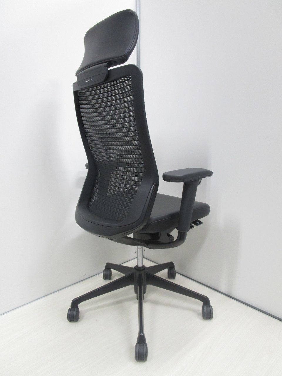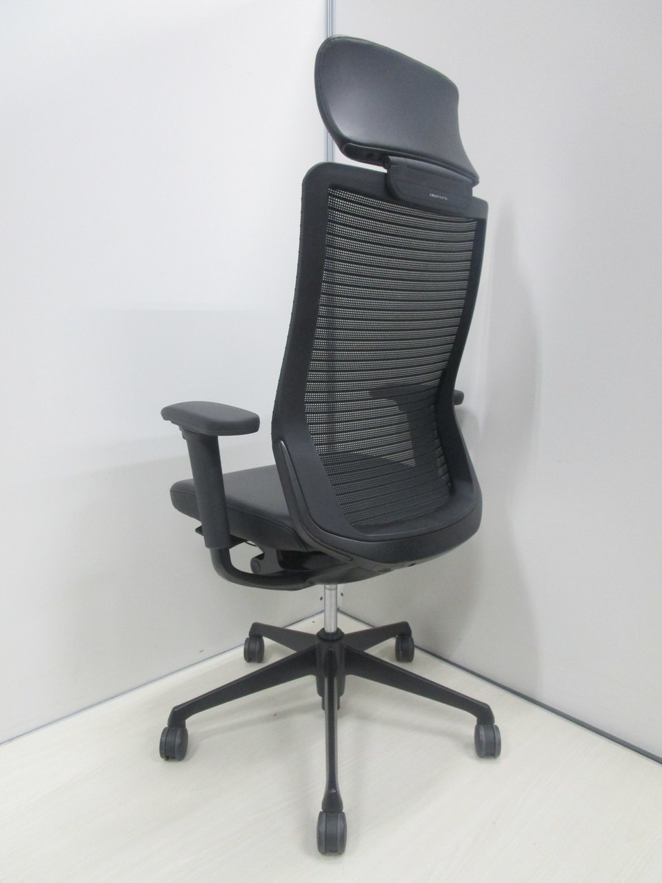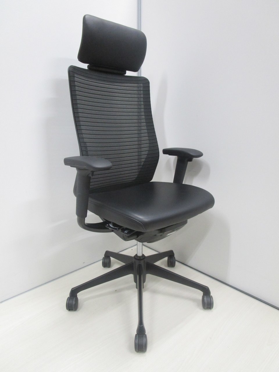 【ヘッドレスト付!ヘッドと座面は本革レザーで高級感抜群!】【肘付】【良好品】オカムラ/コーラル/ブラック【フレームなどもオールブラックの超シックなチェア】- 池袋店