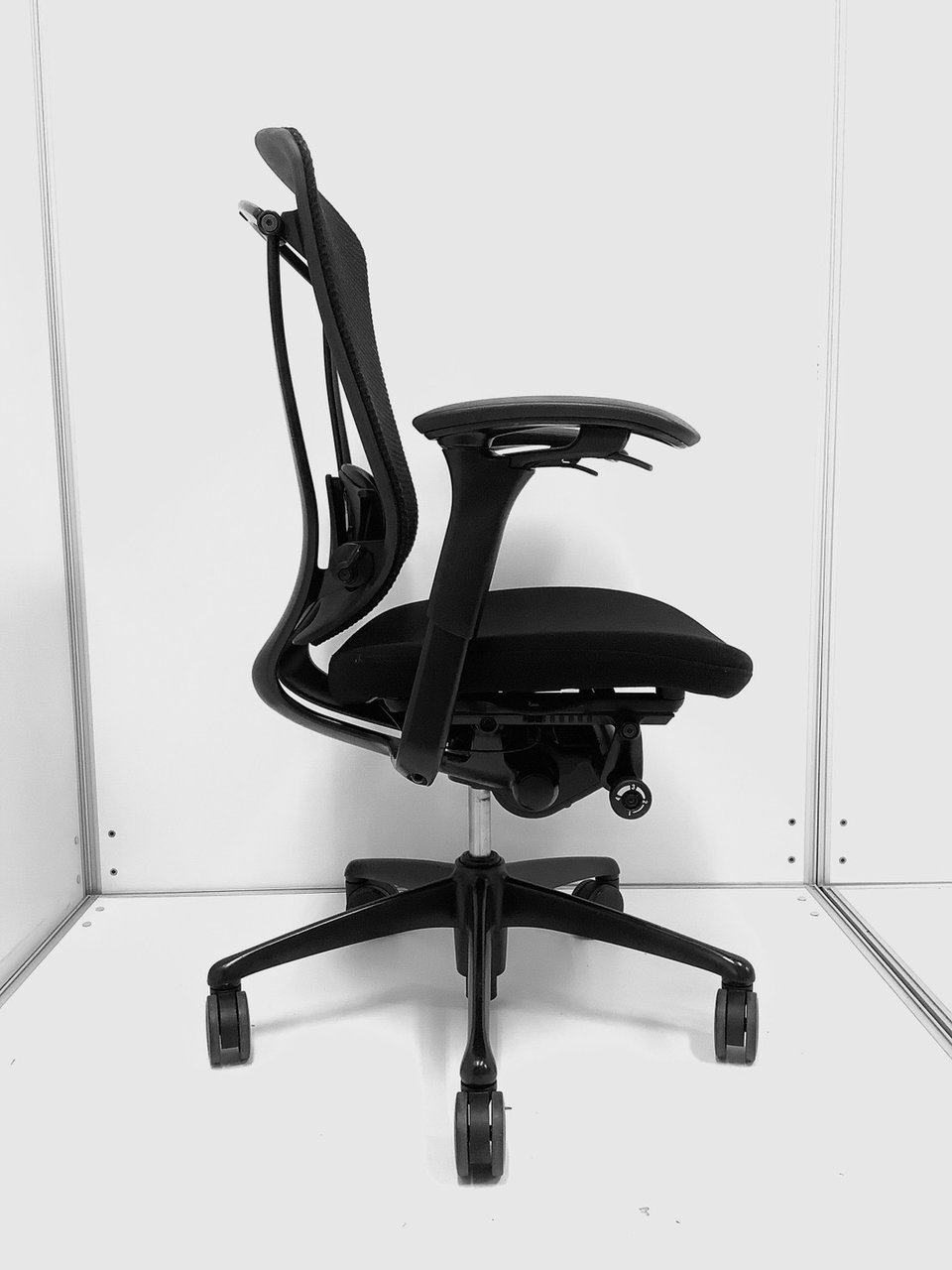 【ヘッドレスト付き】メッシュチェア 高機能モデル|在宅ワーク・長時間作業に最適|リクライニング・座面調整搭載■(Contessa)コンテッサチェア 可動肘付 ブラック