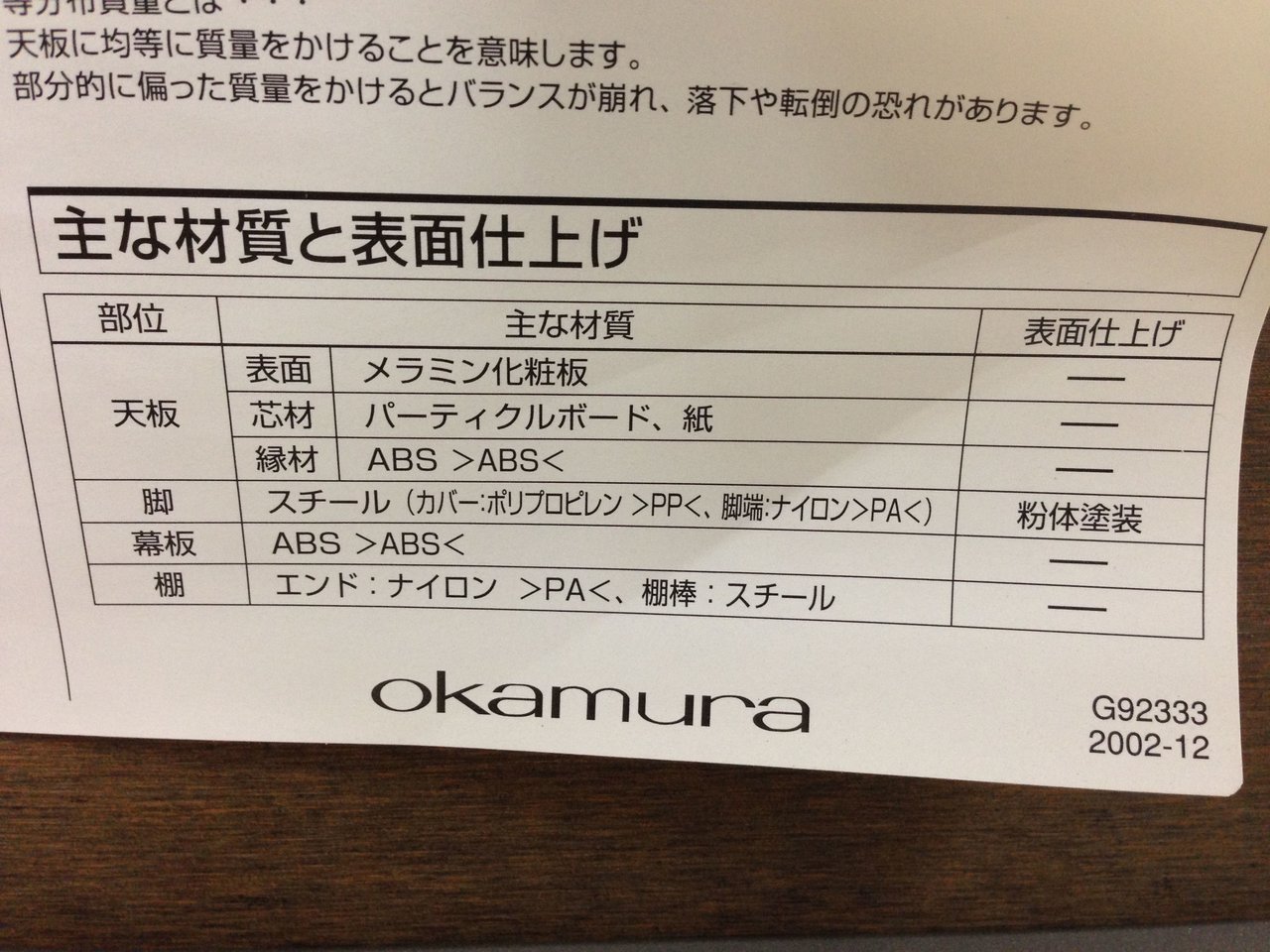 - あり黄ばみ・変色が広い範囲にうっすらある、または濃い黄ばみ・変色が一部ある。(例、天板、幕板、棚板、サイド部分、脚部等にある。)