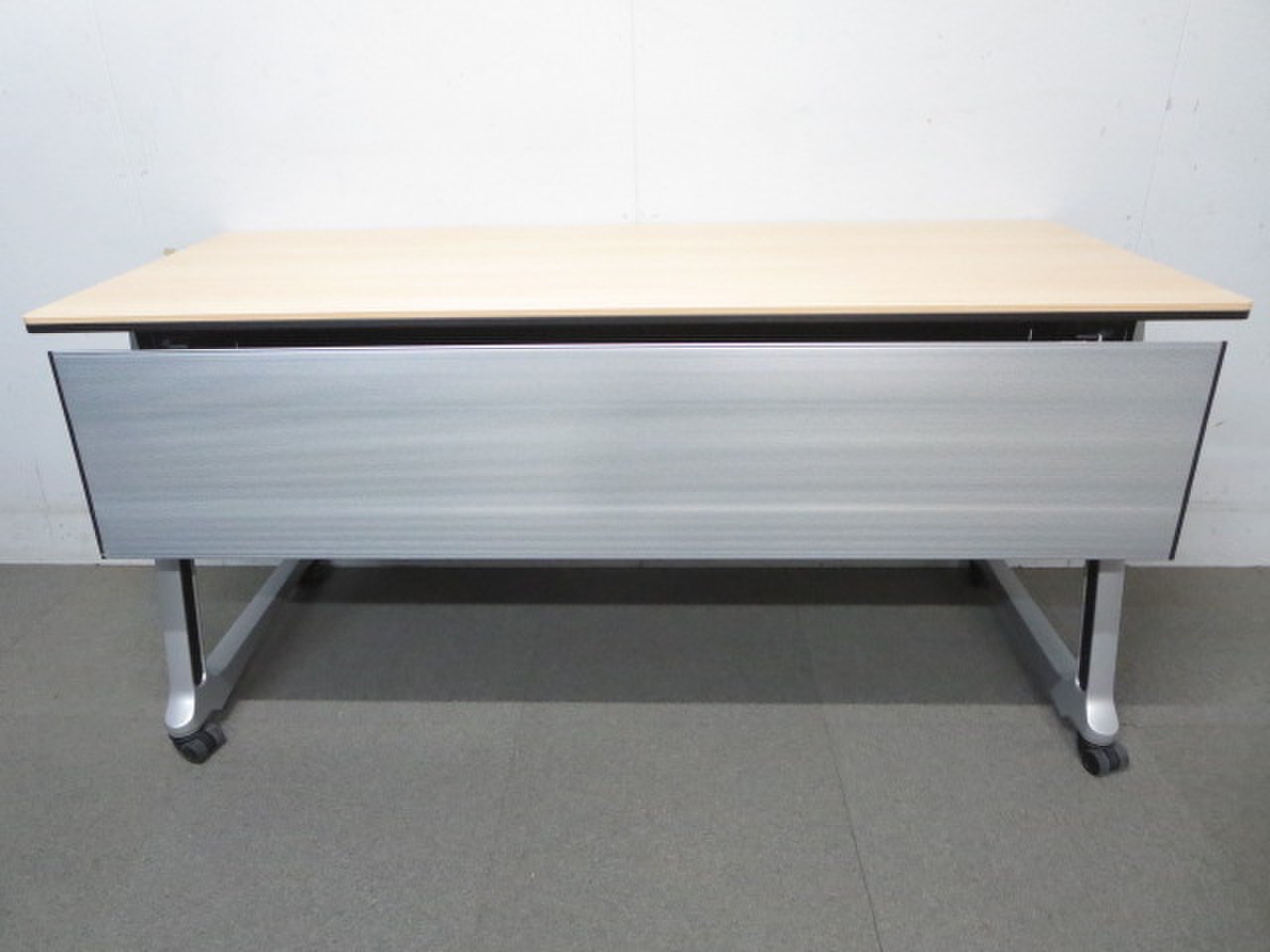 【ハイグレードなデザイン!】■オカムラ製 サイドスタックテーブル W1500×D600mm ナチュラル 幕板パネル付【ラスト1点!お値下げ品!】- 川崎店