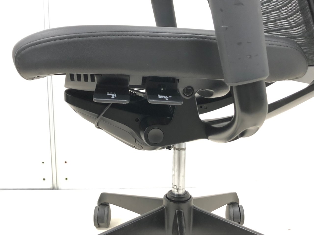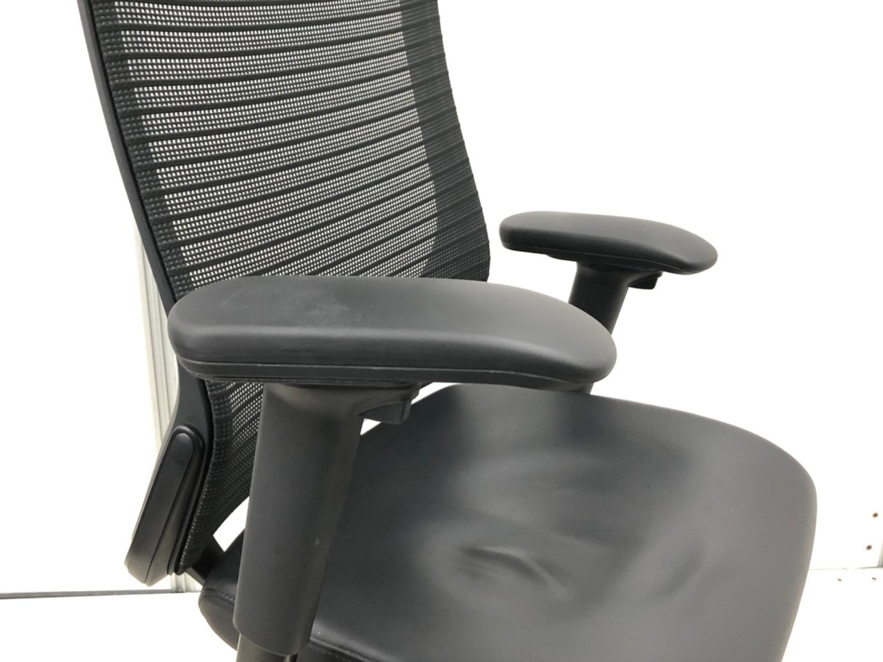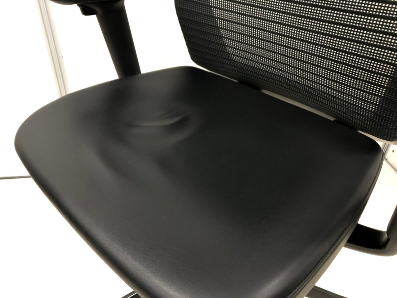 座面に若干のよれ有の為、お値引き!【本革レザーで高級感抜群!】【肘付】【良好品】オカムラ/コーラル/ブラック【フレームなどもオールブラックの超シックなチェア】- 池袋店