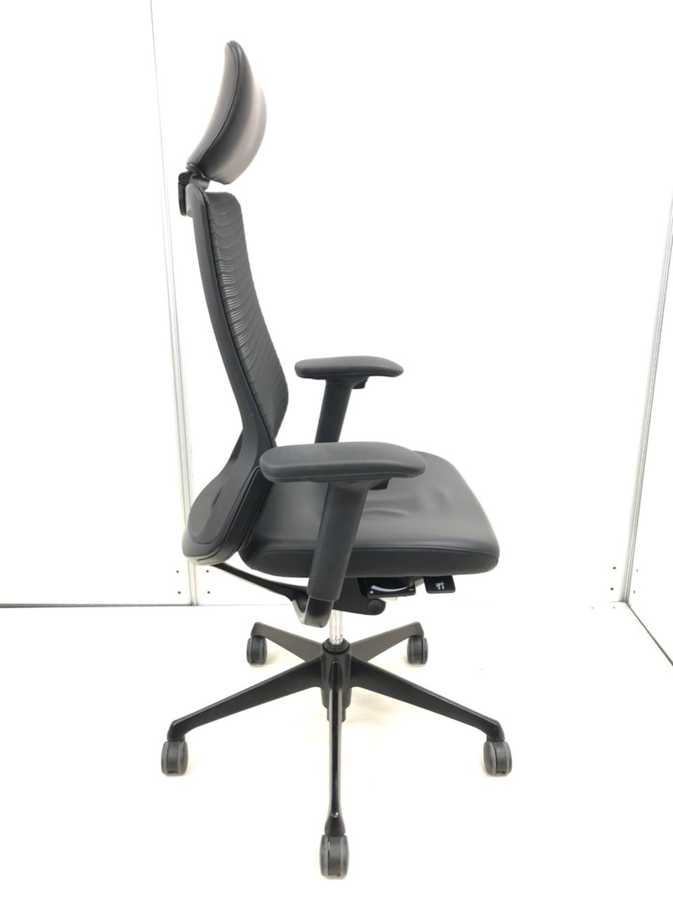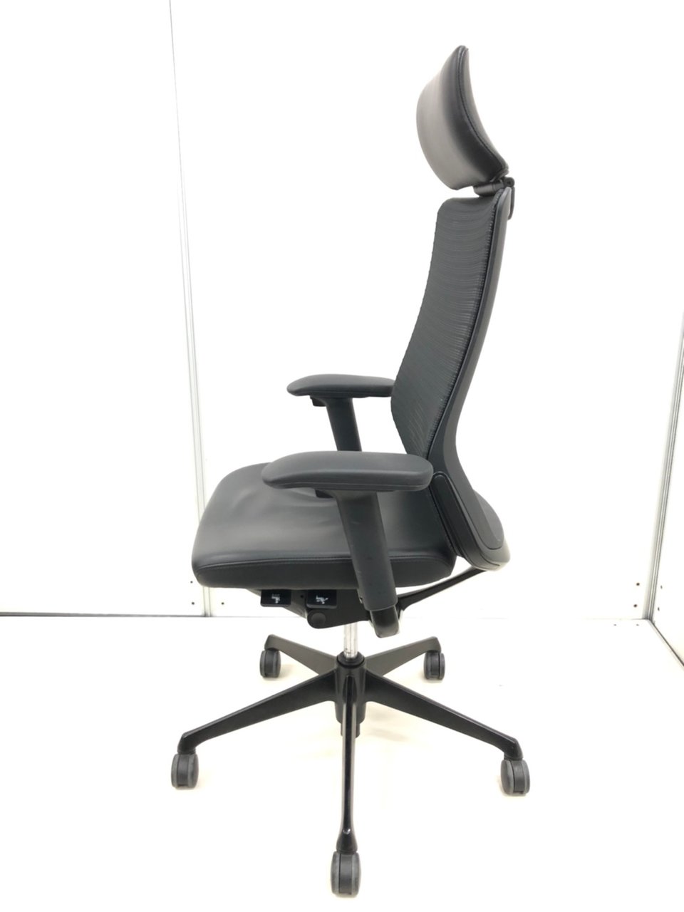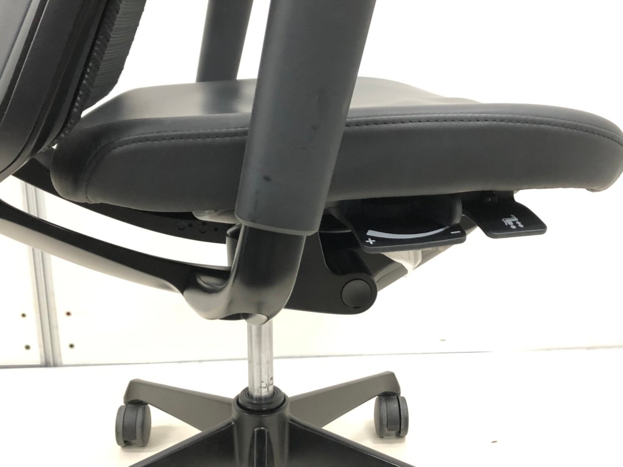 座面に若干のよれ有の為、お値引き!【本革レザーで高級感抜群!】【肘付】【良好品】オカムラ/コーラル/ブラック【フレームなどもオールブラックの超シックなチェア】- 池袋店