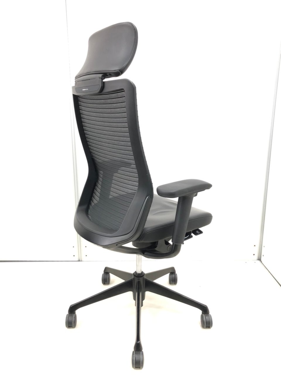 【先行商品!】【機能性抜群の人気チェア!自然な姿勢をサポートするアンクルチルトリクライニング搭載!】■オカムラ(okamura)製 コーラルチェア(Choral) 肘付 エクストラハイバックチェア ファブリックタイプ ■可動肘・ヘッドレスト付 ■ブラック