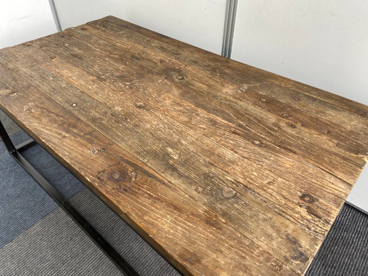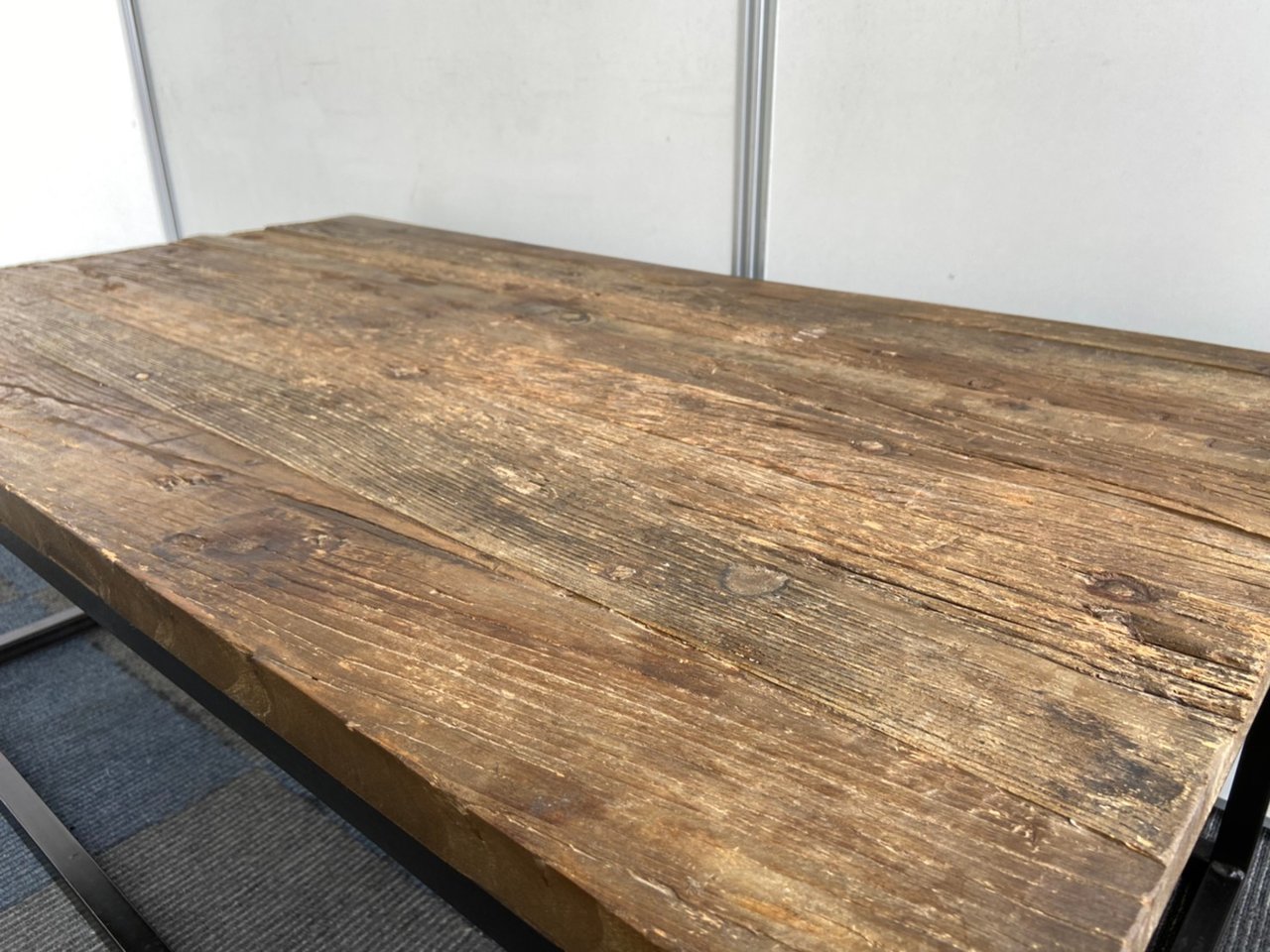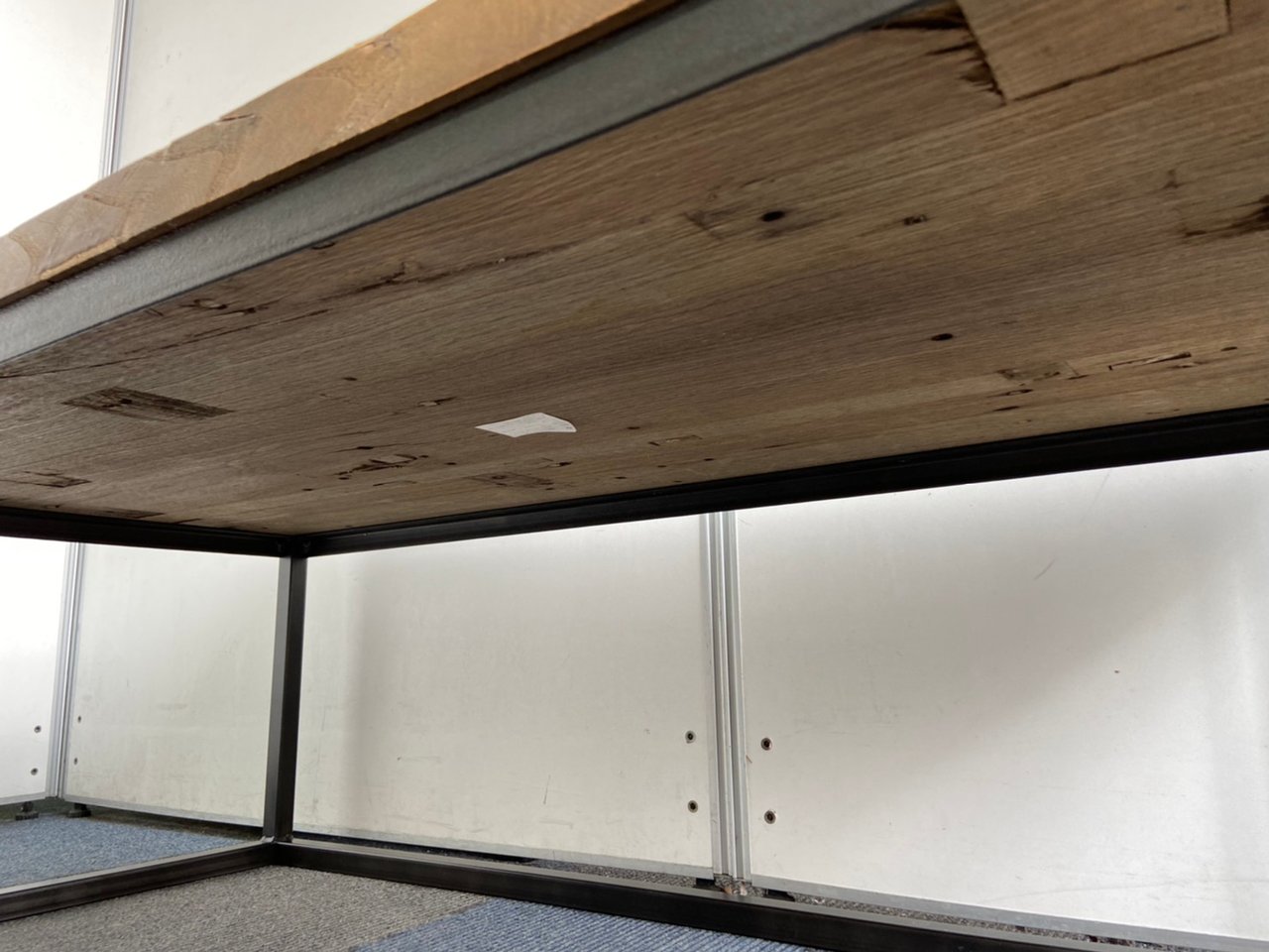 - 目立つ箇所複数あり深い傷・凹みが商品全体にある。(例、天板、幕板、棚板、サイド部分、脚部等にある。)