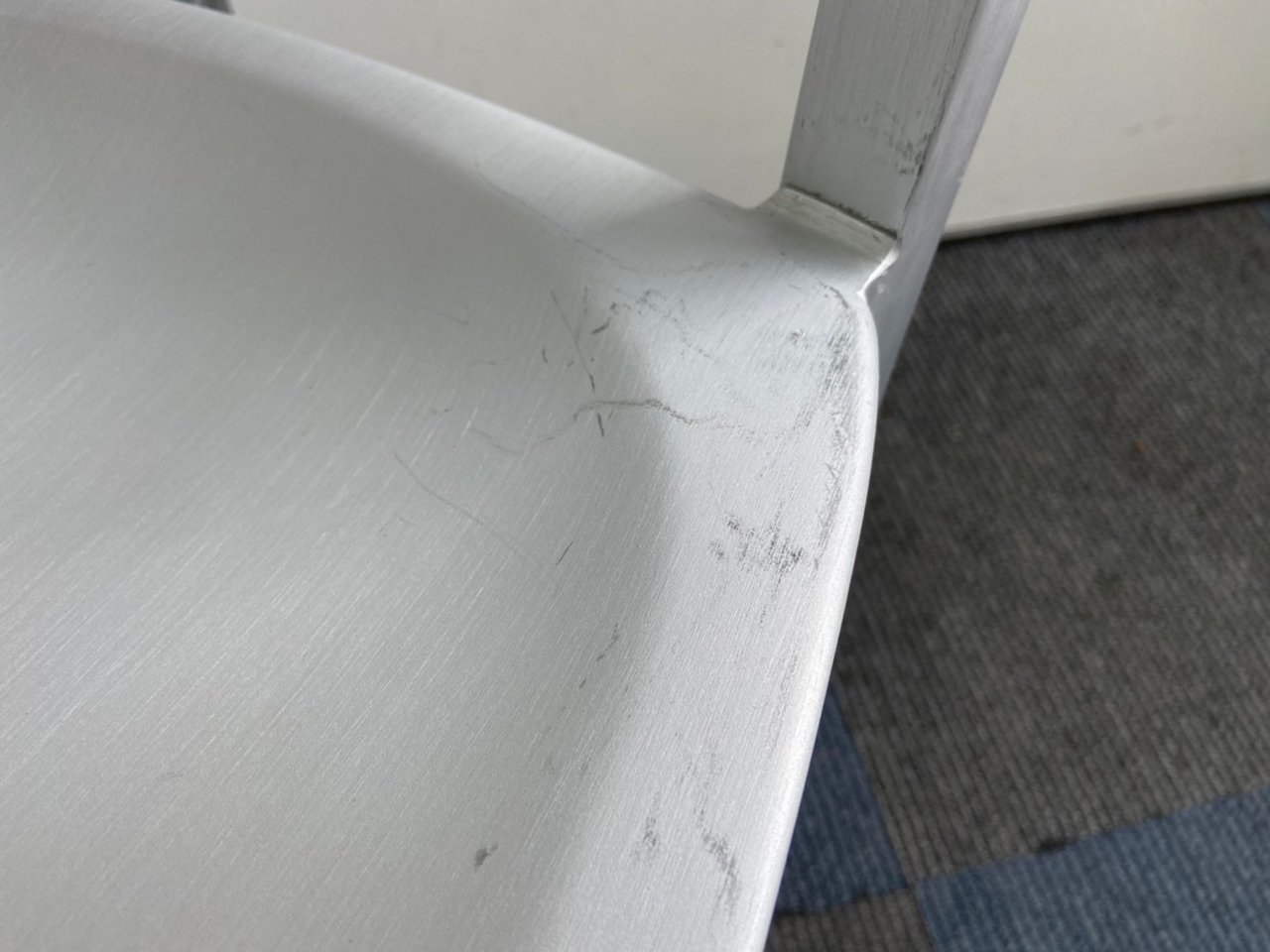 - 目立つ箇所あり傷・破れ・ほつれ・へたり・しわが多数または深い傷・破れ・ほつれ・へたり・しわが一部ある。※座面・背もたれ、シェル、脚部等にある。