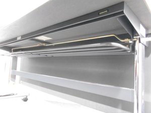 - 一部不具合あり天板歪み、アジャスター無し、キャスター使用不可ようなそのテーブルの本来の効用を果たすための機能以外の一部が使用不可な状態。(例、キャスターロッ ク機能使用不可、棚板無し等がある。)