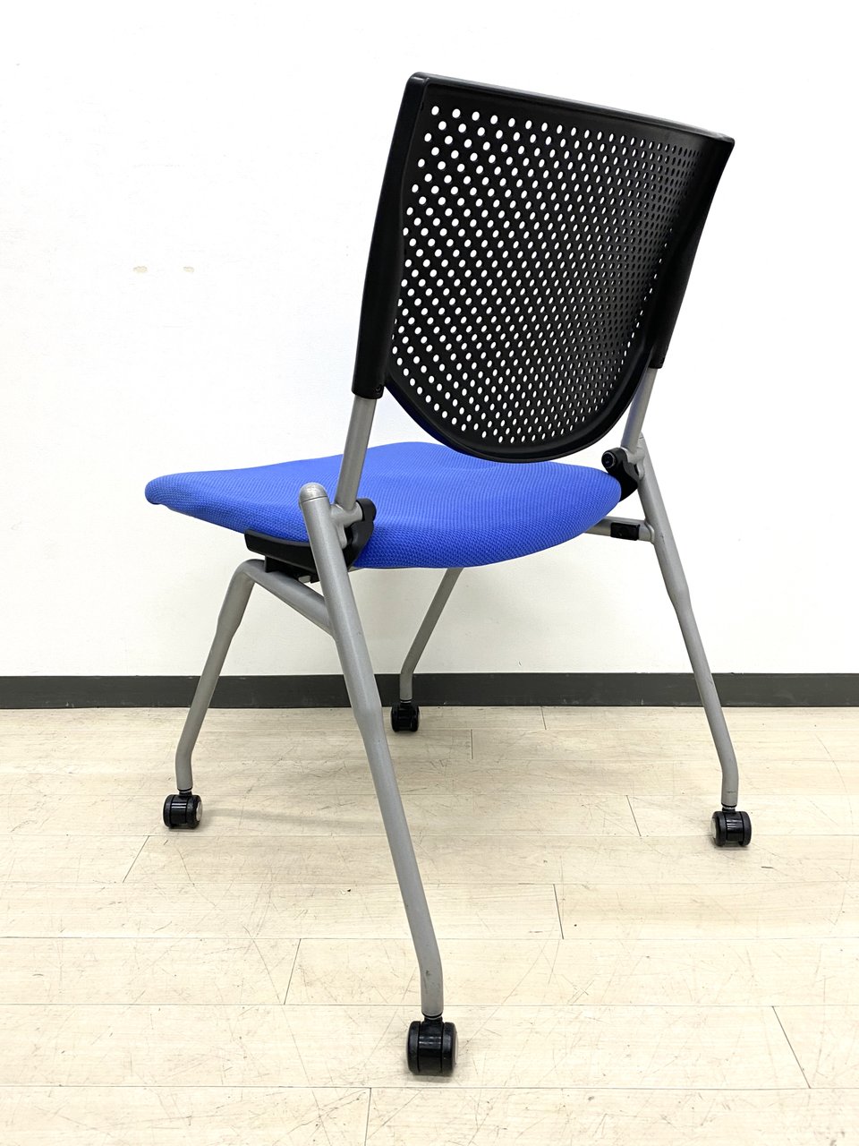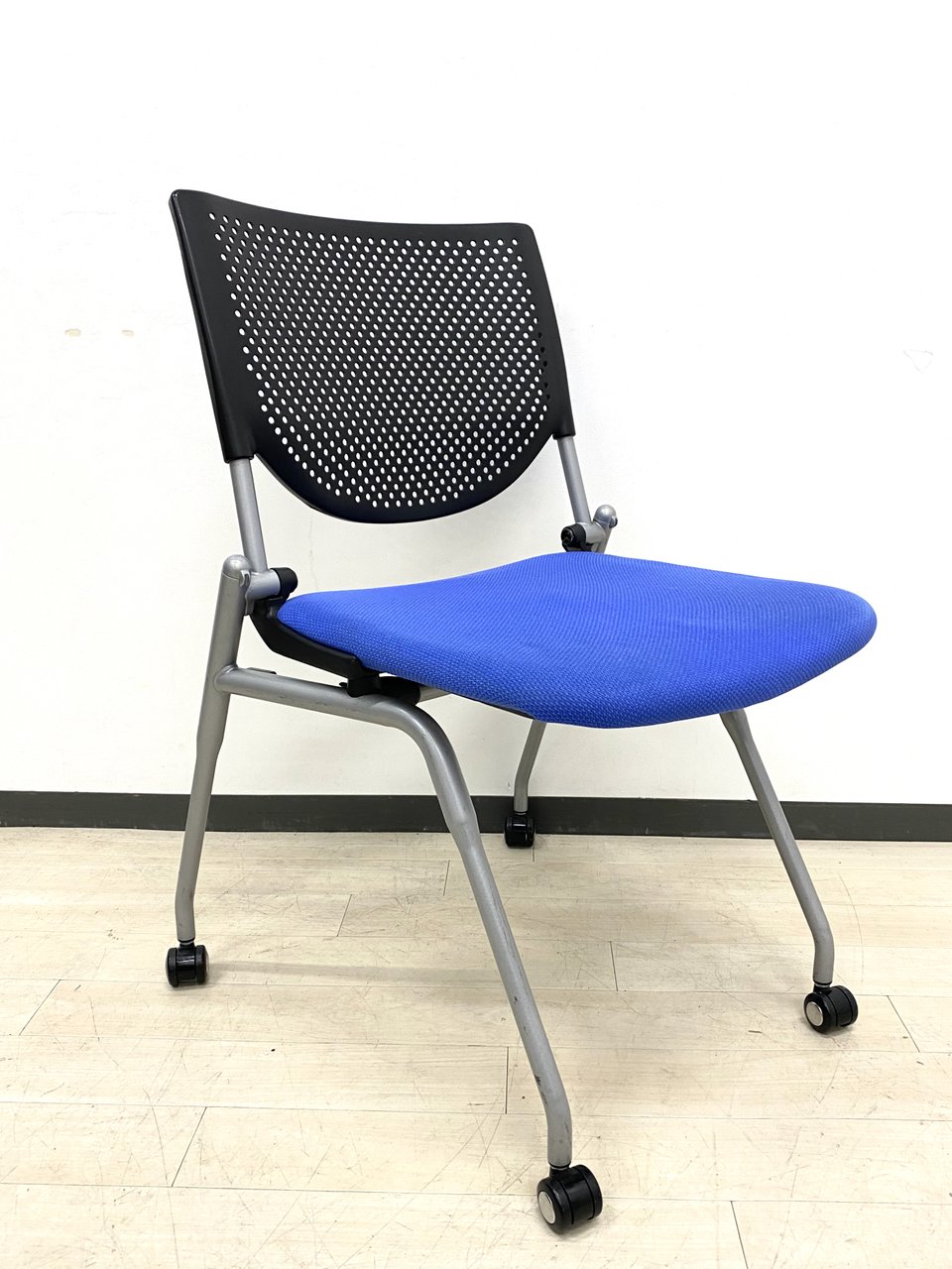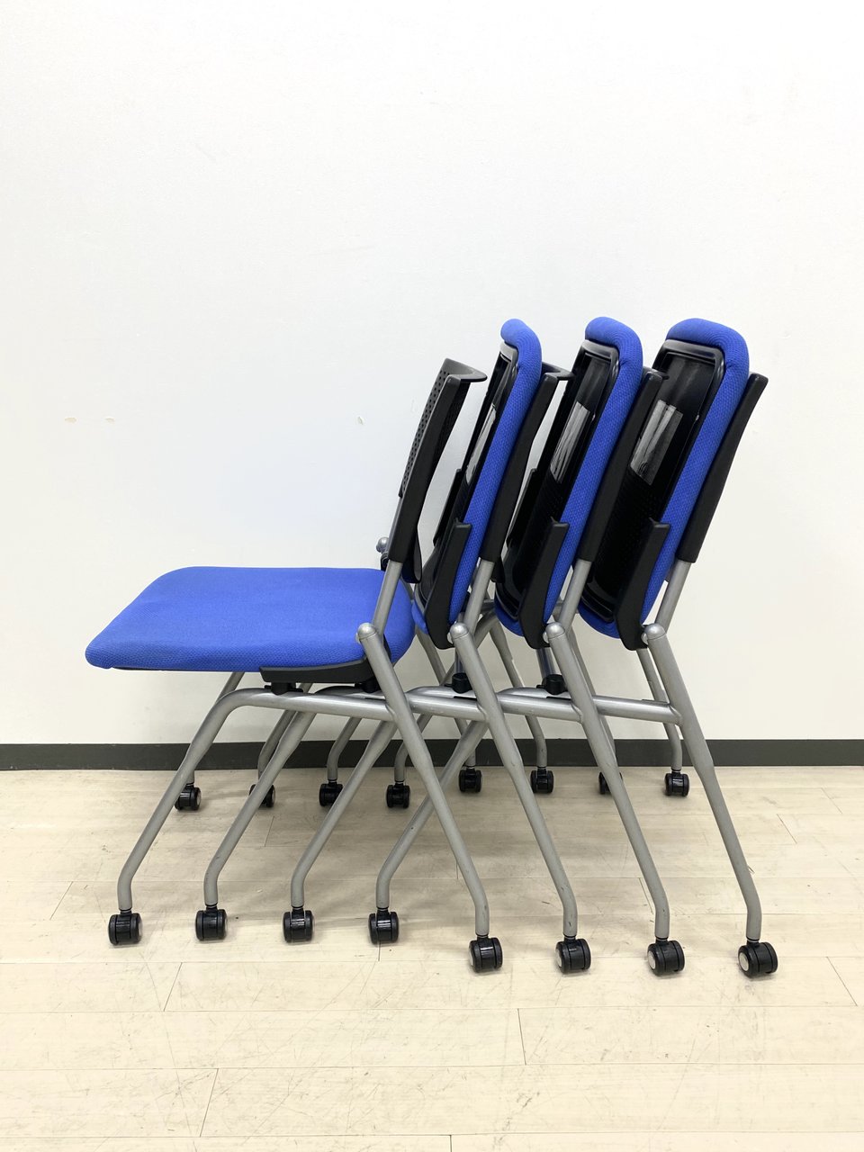 【会議室にピッタリ!コンパクト設計で収納がしやすい!】■オカムラ プロスタックシリーズ ネスティングチェア ミディアムブルー ■フレキシブルに使えるキャスター付!【在庫入替セール品!(本在庫限定価格)】