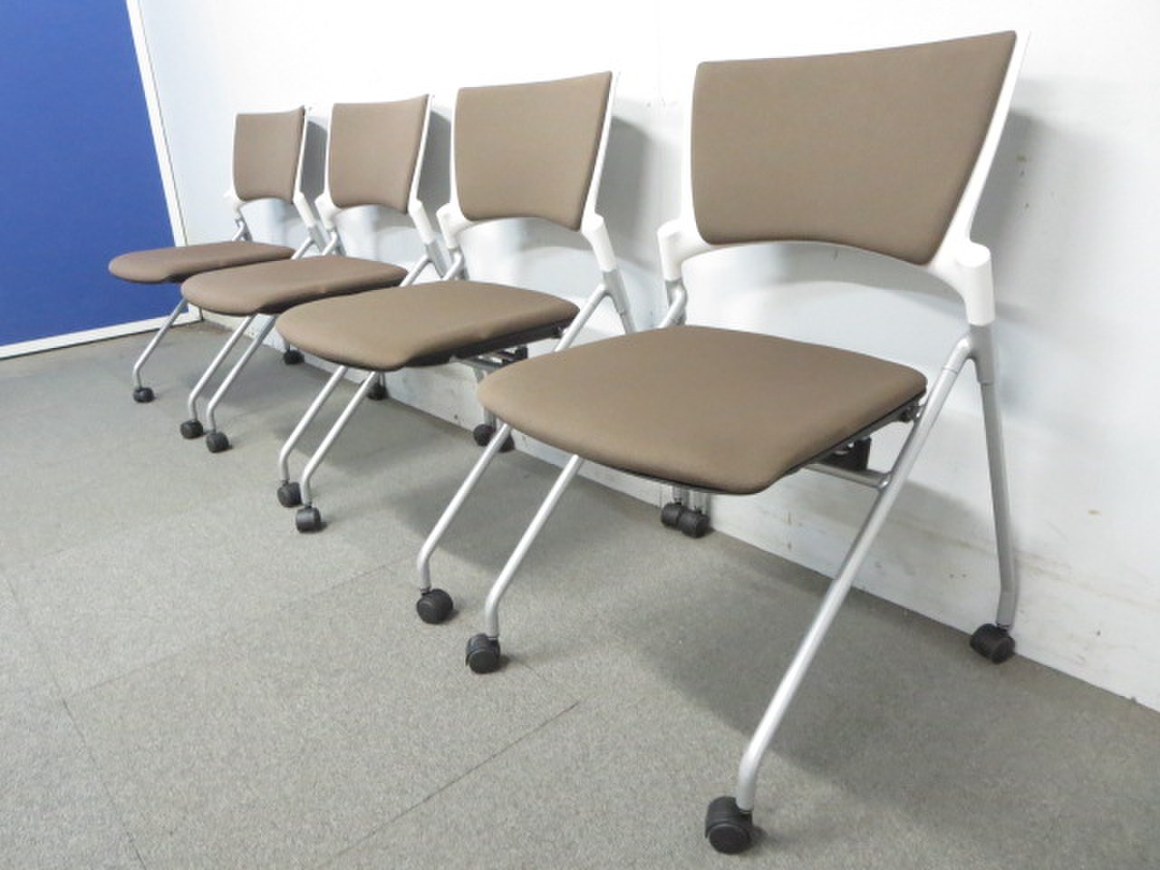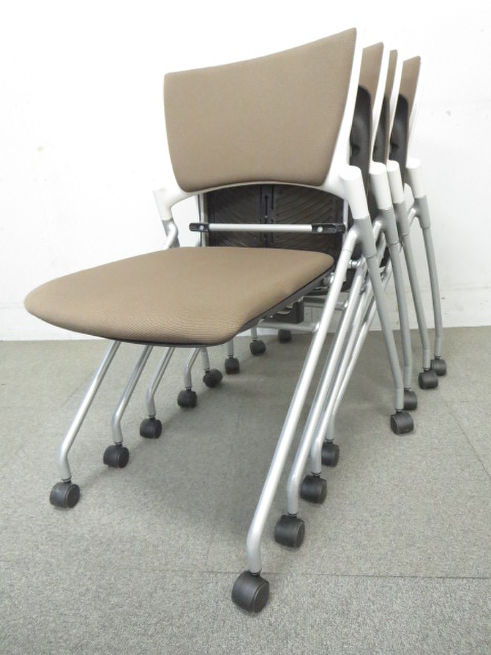 【キャスター付でスイスイ動かせる!】■イトーキ製 マノスチェア(MANOSS)アンバー【ネスティングチェア】- 川崎店