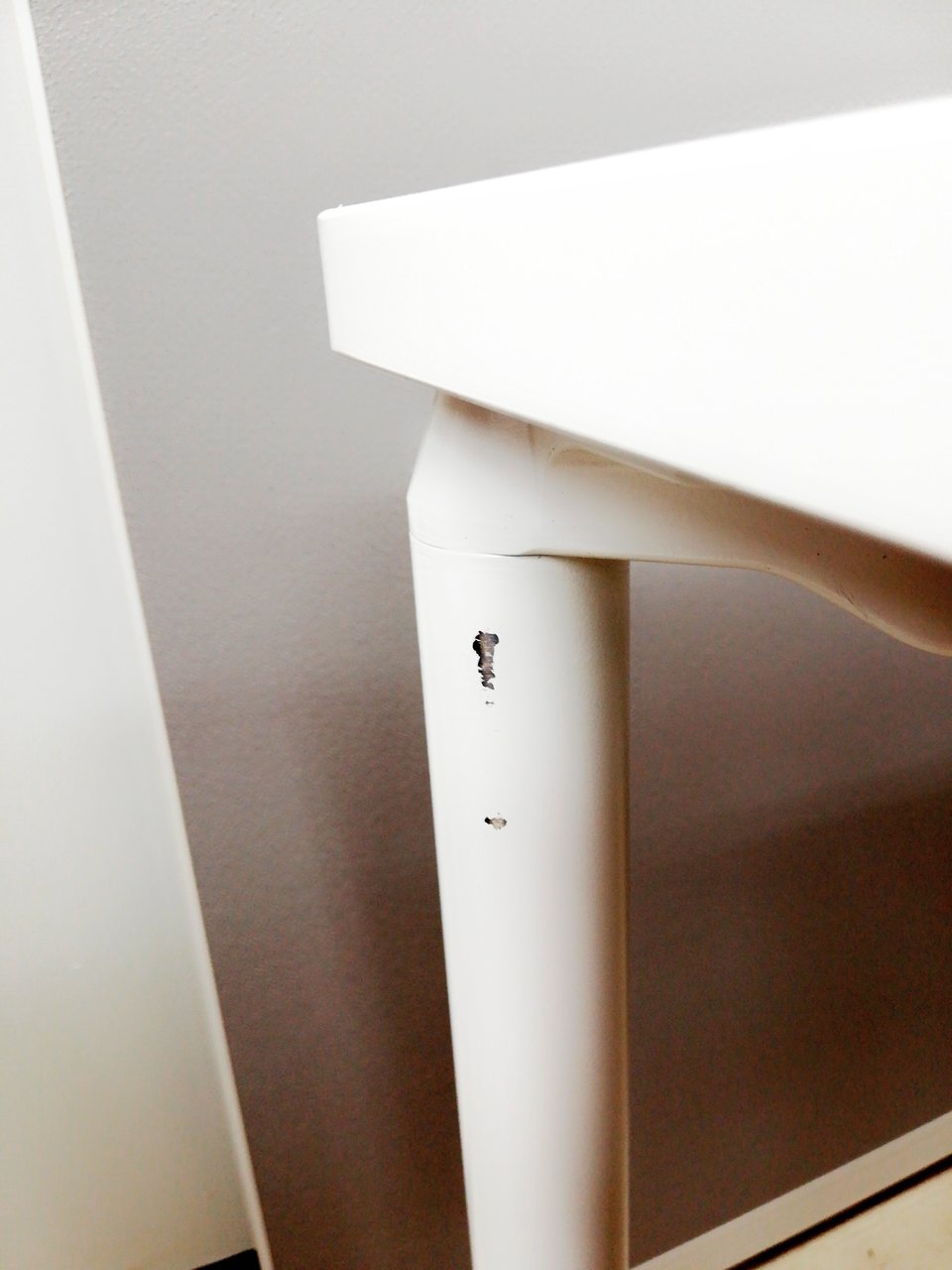 - 壊れている天板歪み、アジャスター無し、キャスター使用不可のようにそのテーブルの本来の効用を果たすための機能に不具合がある。