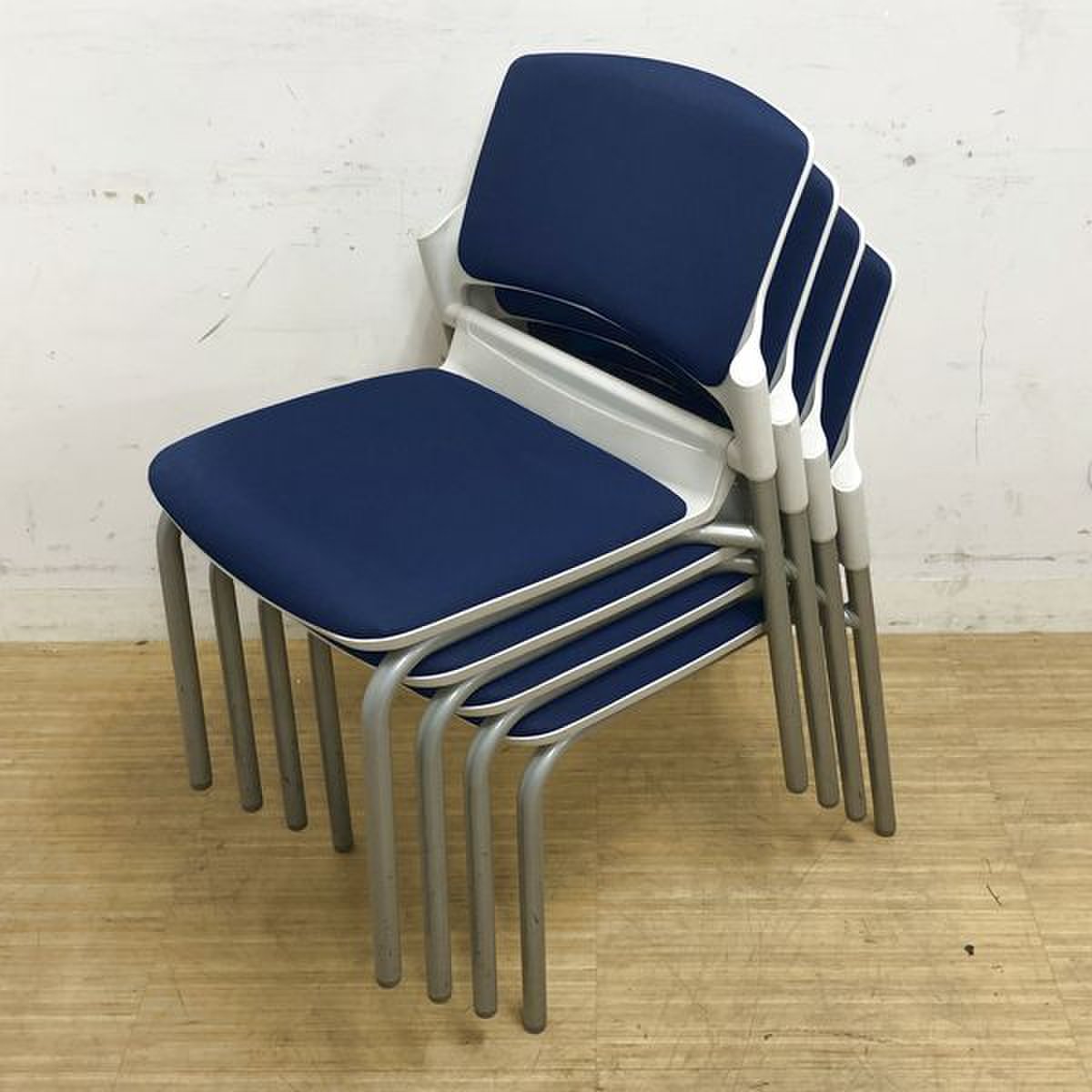 【会議・ミーティングにオススメ!】■ウチダ MF-180シリーズ スタッキングチェア ブルー キャスター無し