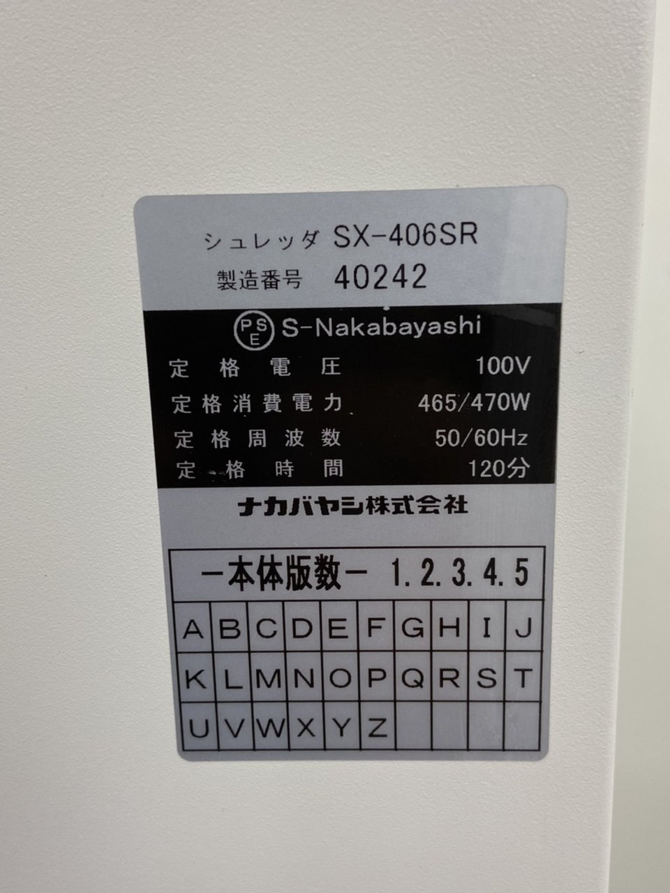 【中古】 SX-406CR ナカバヤシ シュレッダー 289378