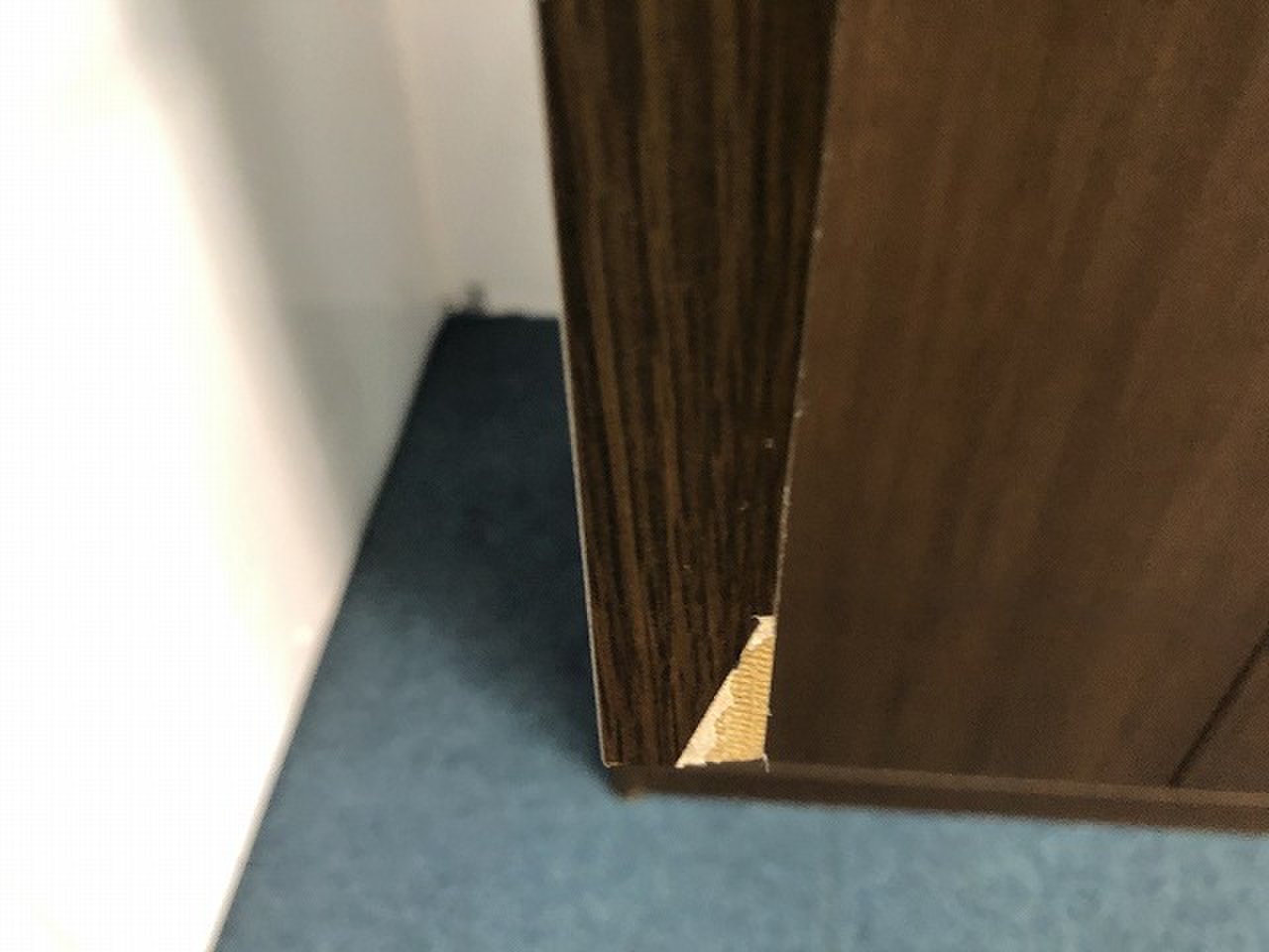 - 壊れている引出の開閉不可、施錠不可、棚板無しといったその書庫の本来の効用を果たすための機能に不具合がある(例、扉、引出の開閉が行えない。)