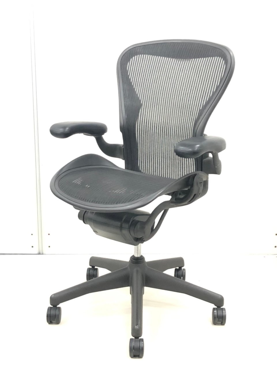 【★状態イマイチのためお安く!】■ハーマンミラー製 アーロンチェア Bサイズ 固定肘 ※キズあり・ランバーサポート無・昇降ガス圧弱めのためお安く!【訳あり特価品】
