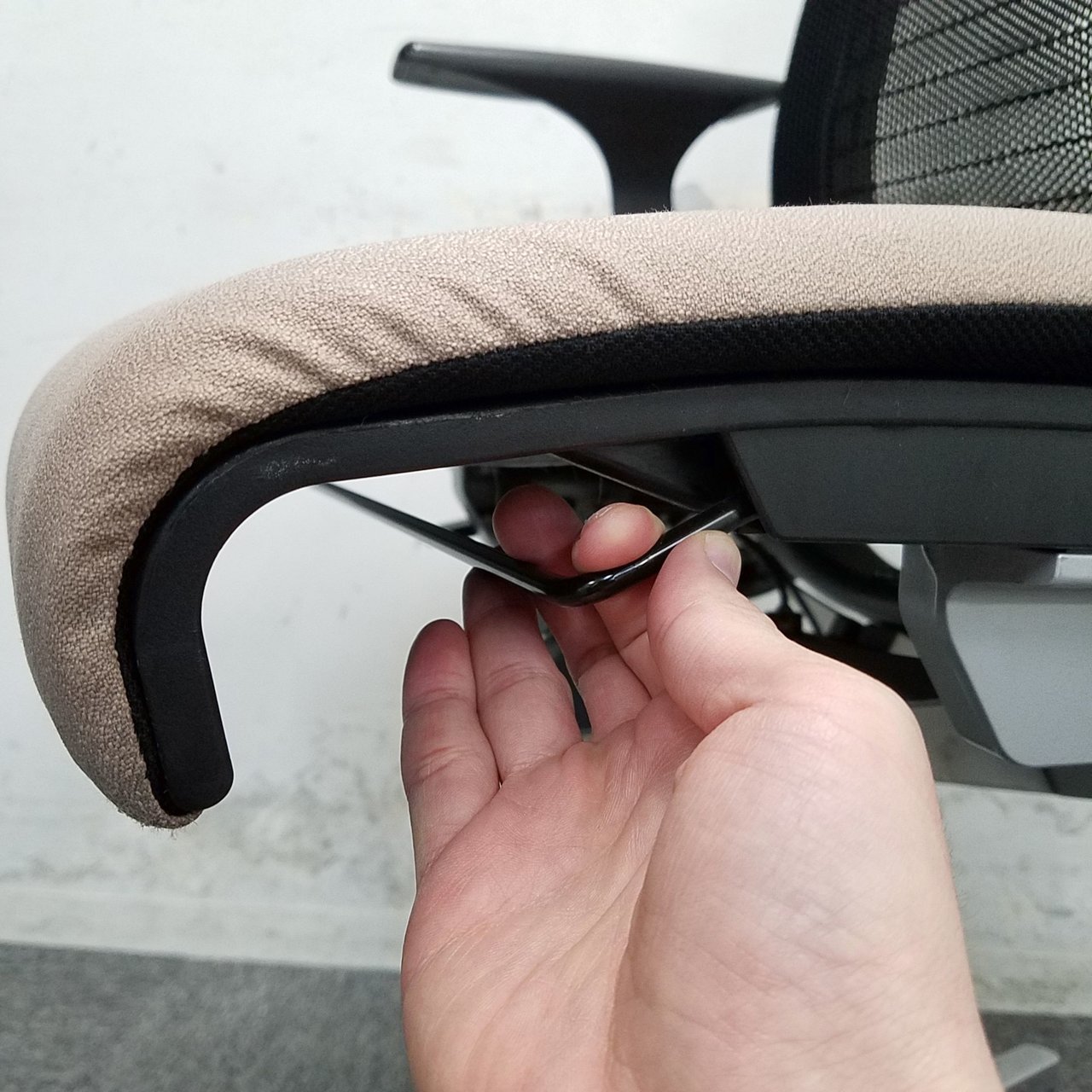 快適な座り心地に不可欠な調節機能である、上下昇降、座面の奥行き調整、リクライニングなどを備えており、操作もわかりやすく好評です。 特に、座面の奥行きは、座面下の左右に通った細いバーで調整でき、座ったままで軽やかに滑るように調整が可能です。 価格面では、新品では高めですが、中古は流通も多く、定価の3割前後の価格で高級チェアの座り心地を手に入れることができます!