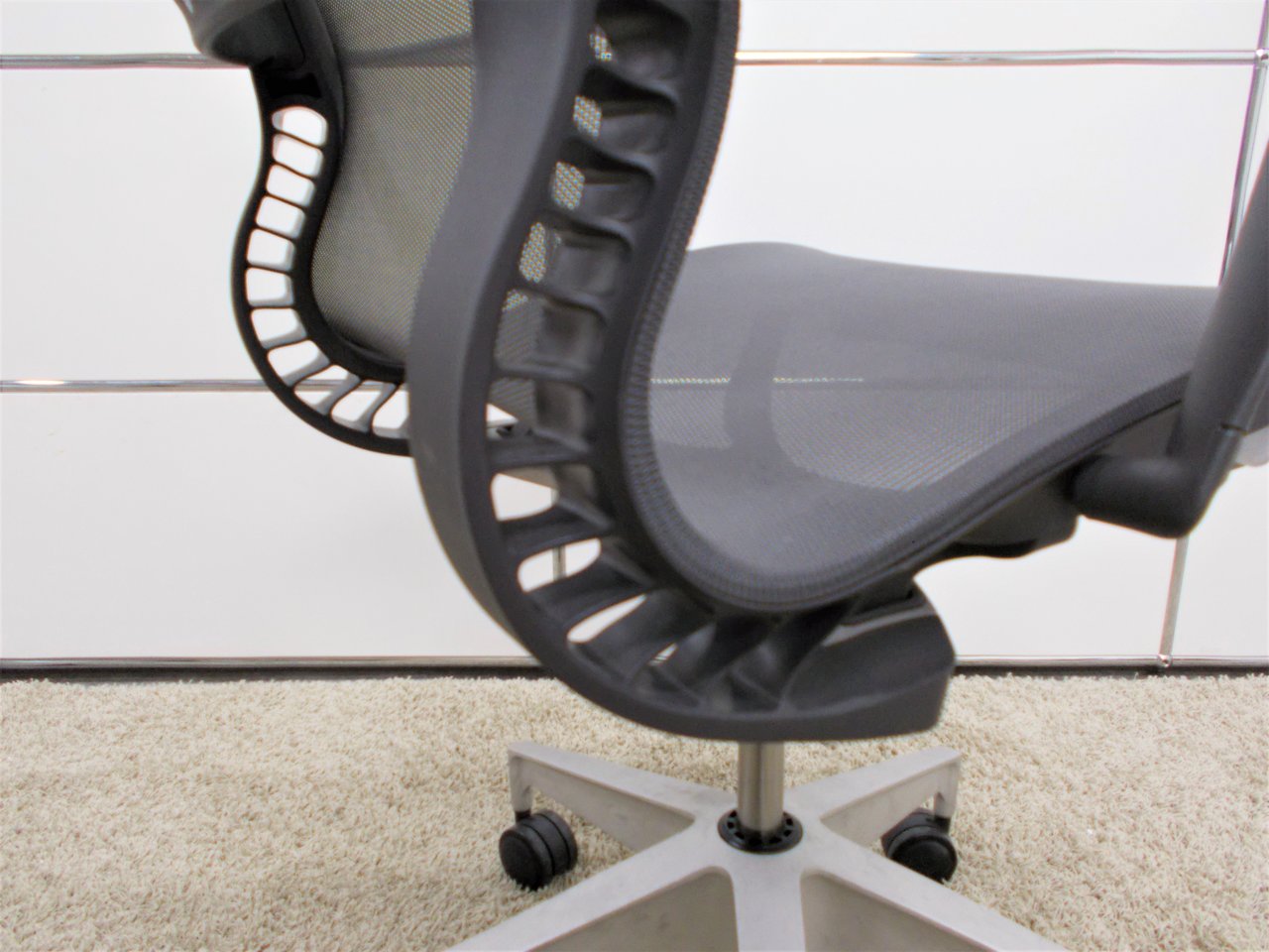 チルト機構やさまざまな調節機能の代わりに、座面と背もたれが身体の動きに連動する、キネマチック・スパインを採用したオフィスチェアです。