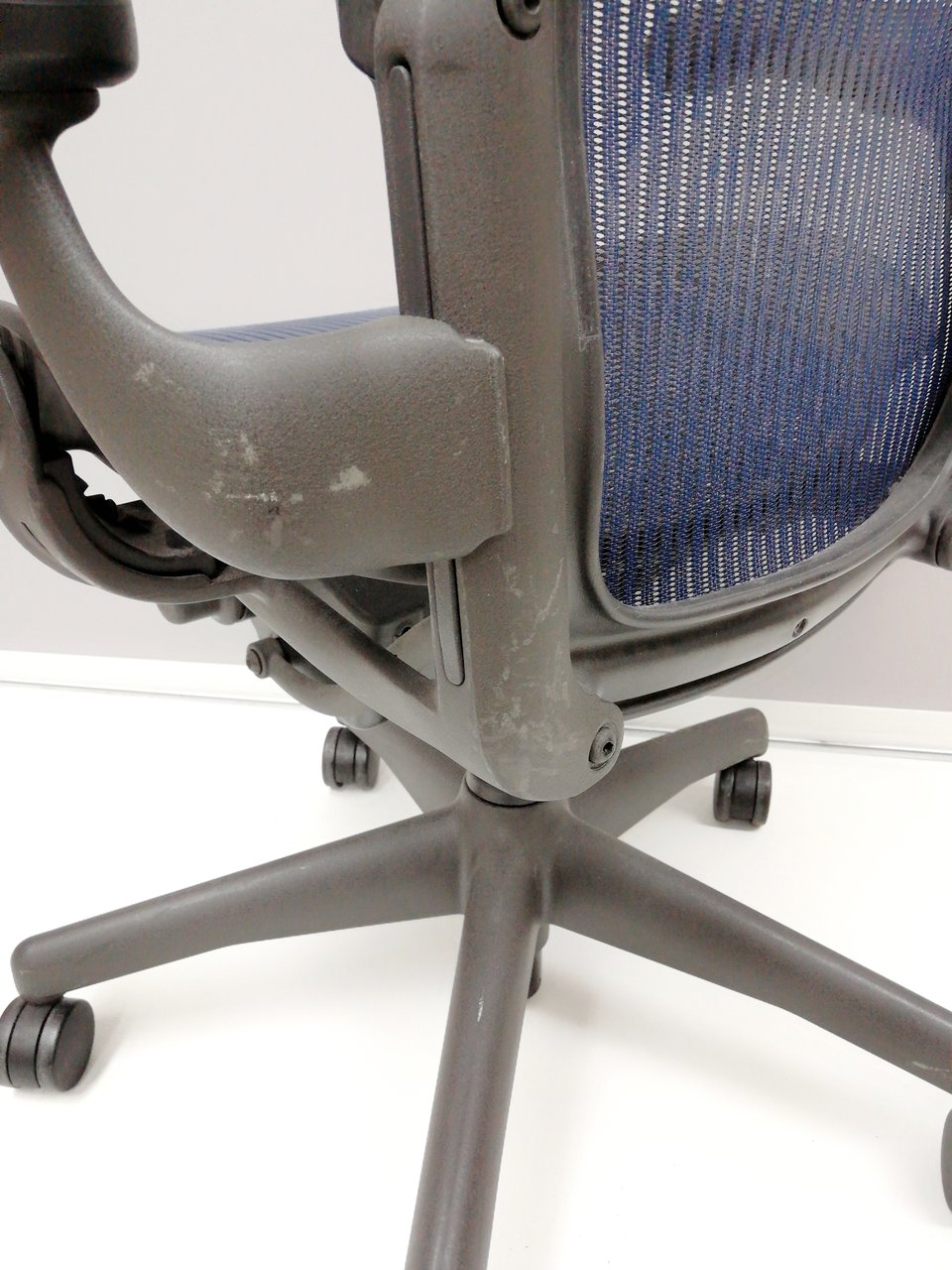【★状態イマイチのためお安く!】■ハーマンミラー製 アーロンチェア Bサイズ 固定肘 ※キズあり・ランバーサポート無・昇降ガス圧弱めのためお安く!【訳あり特価品】