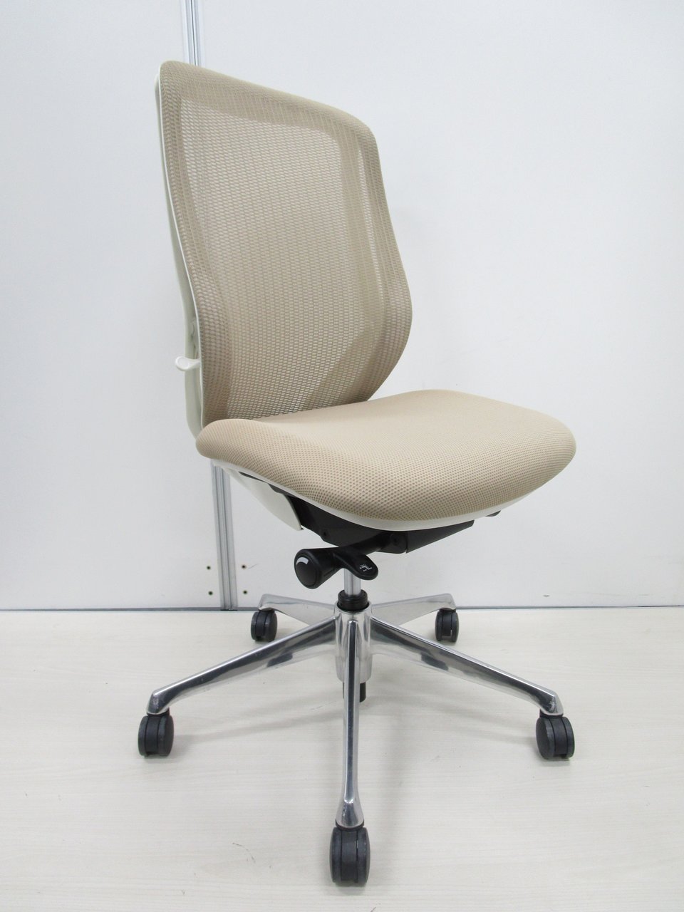 【定価約10万円】【オカムラ製品で最も人気を集める高機能メッシュチェア!】■オカムラ(okamura)製 シルフィ(Sylphy) 肘無 ハイバック 背面メッシュ ■ベージュ ハンガー付き