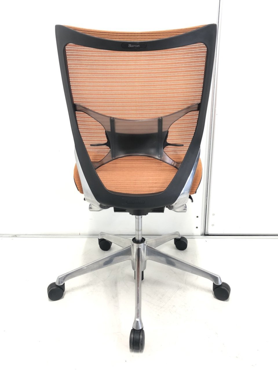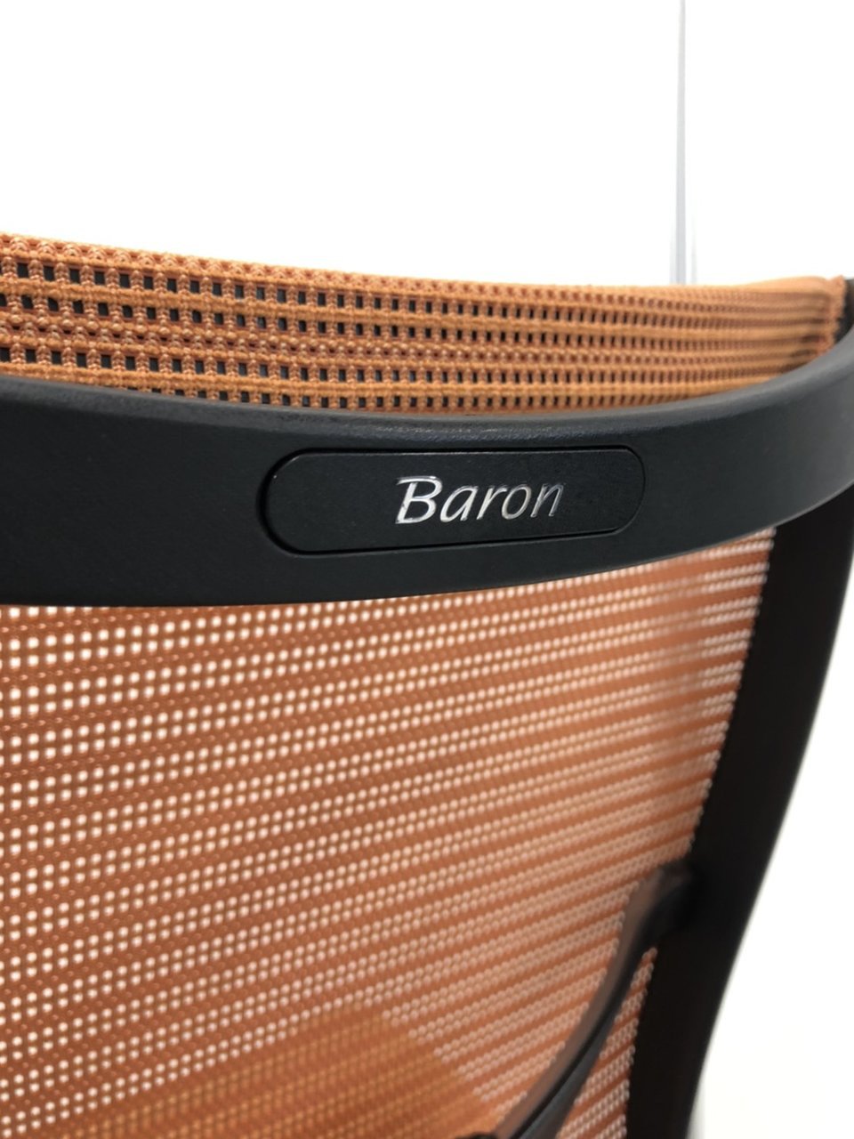 発売当時、既に人気を博していたオカムラの高級チェア、コンテッサから手元で座高調整ができるスマートオペレーション機能を取り除くなどしてリーズナブルにしたのがバロンです。その際に少しだけコンパクト化されました。そのことが、日本人の体格、日本のオフィス、家庭環境に適し、国内で多くのシェアを獲得する要因の一つになったのではないかと思います。