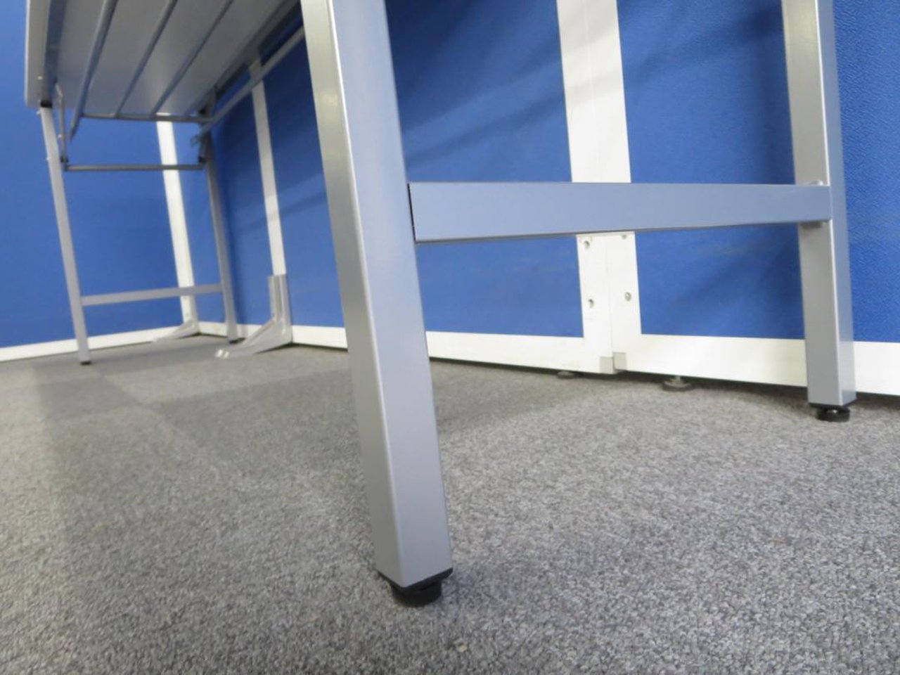- 一部不具合あり天板歪み、アジャスター無し、キャスター使用不可ようなそのテーブルの本来の効用を果たすための機能以外の一部が使用不可な状態。(例、キャスターロッ ク機能使用不可、棚板無し等がある。)