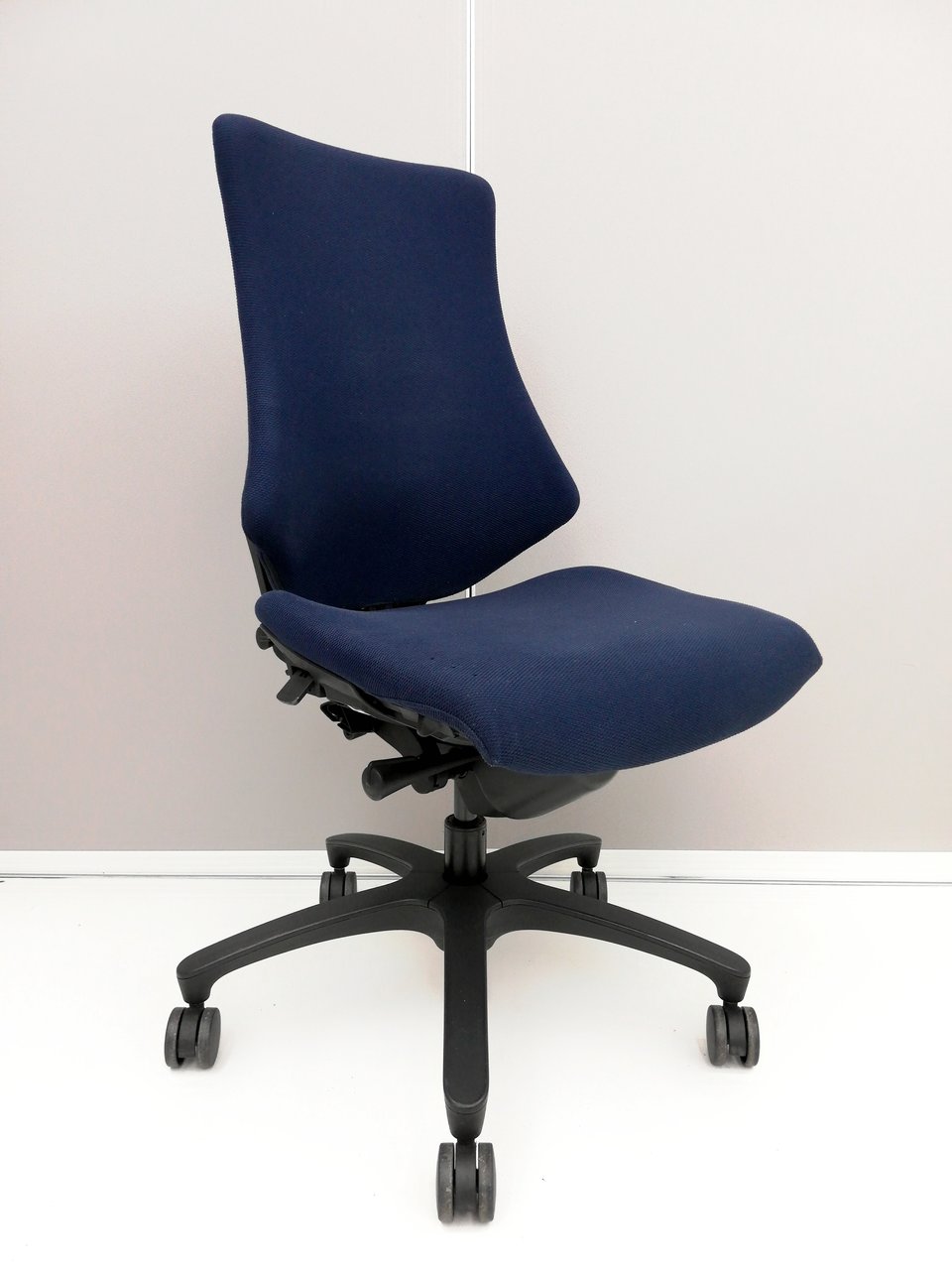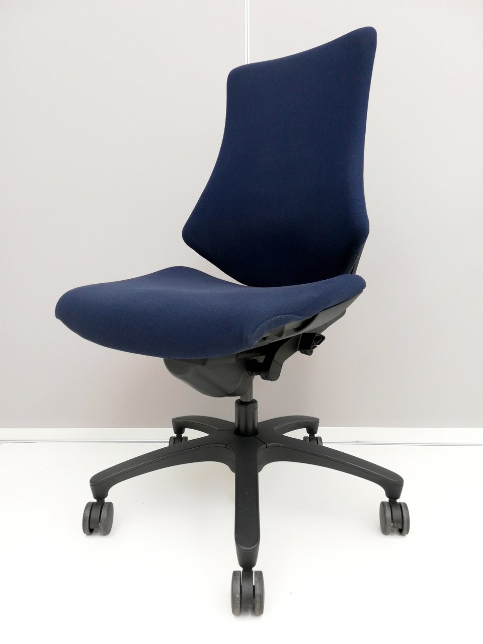 【姿勢の変化にフレキシブルに対応!座り心地も抜群な高機能チェア!】■イトーキ(ITOKI)製 エフチェア 肘無しハイバック クロスバックタイプ ■ネイビーブルー×ブラックシェル〈岐阜・愛知・三重・静岡・福井〉