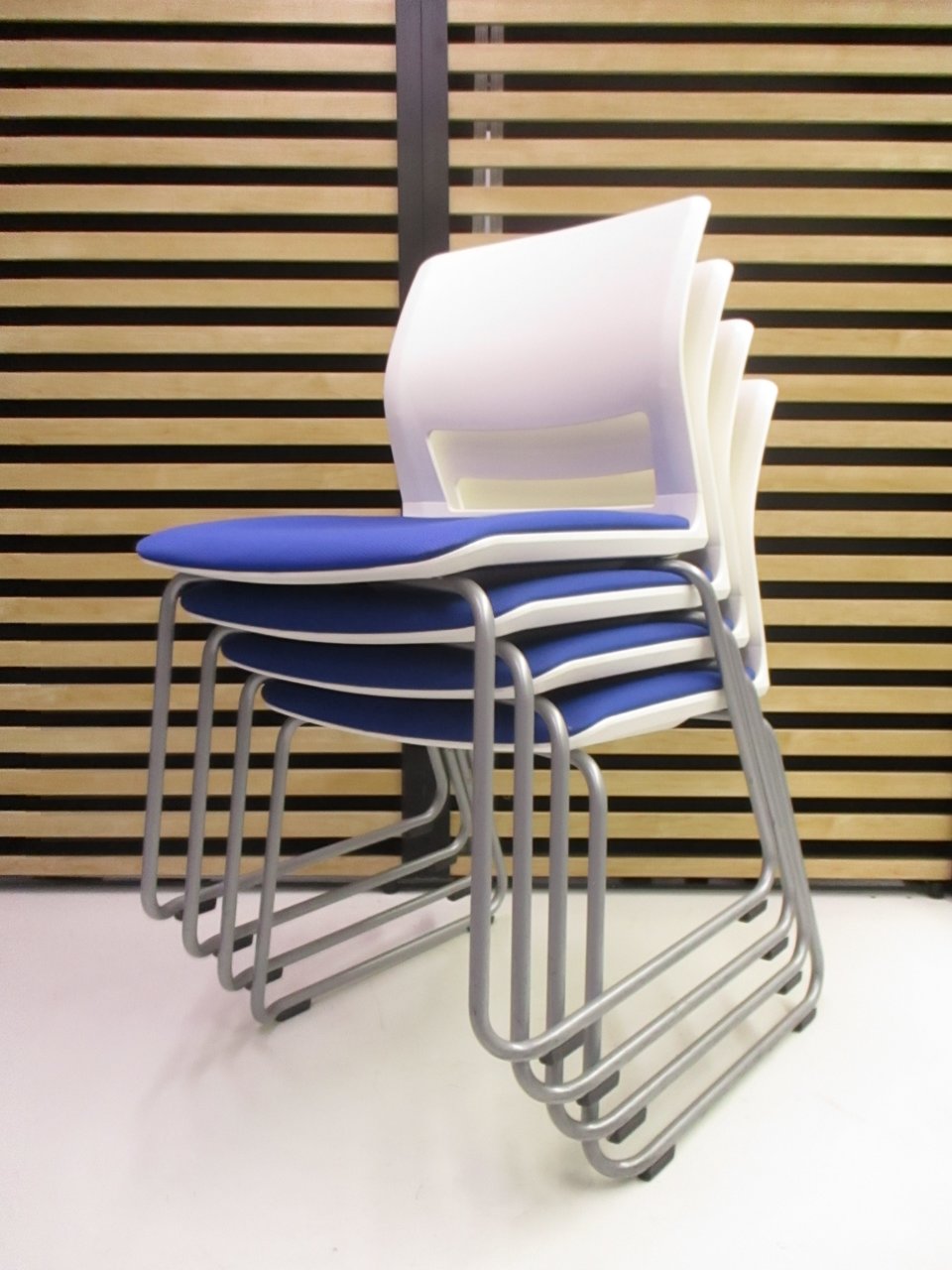 【重ねて収納可能!スペースの削減にお勧めなスタッキングチェア!】■コクヨ(KOKUYO)製 CK-160 スタッキングチェア ミーテイングチェア ■背カバーあり ■ブルー×ホワイトシェル