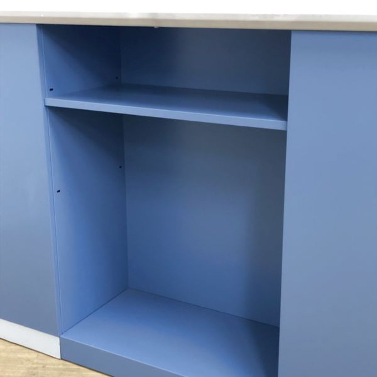 - 一部不具合あり天板歪み、引出開閉不可、アジャスター無し、施錠不可のようにそのカウンターの本来の効用を果たすための機能以外の一部が使用不可な状態。(例、引出が 開閉しづらい等がある。)