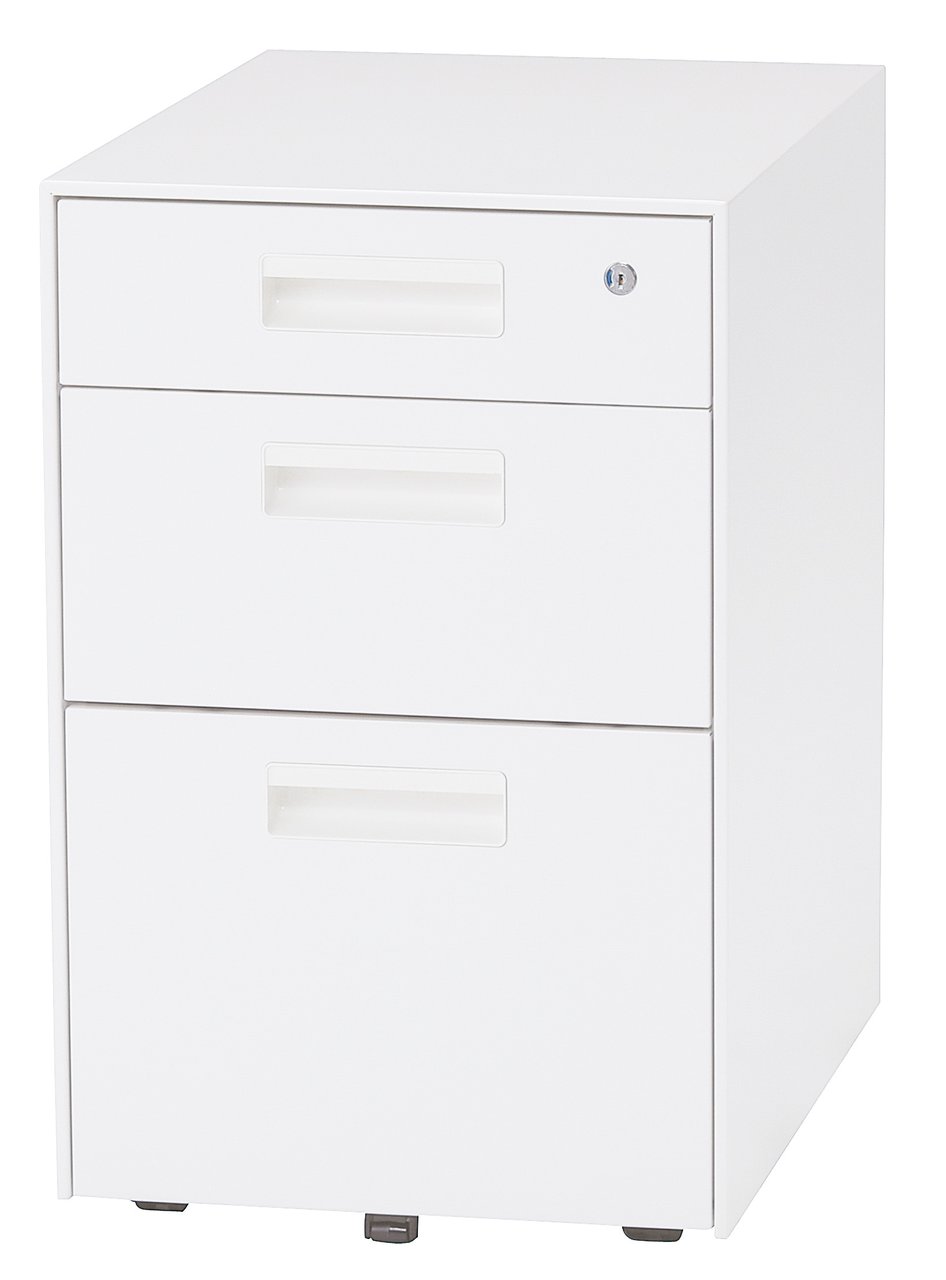 3段ワゴン。シリンダー錠。 スタイリッシュなインセットタイプワゴン。- 全店共通商品