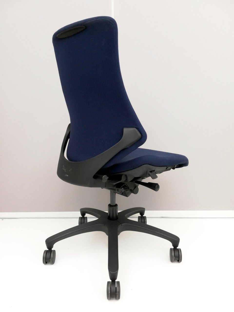 【姿勢の変化にフレキシブルに対応!座り心地も抜群な高機能チェア!】■イトーキ(ITOKI)製 エフチェア 肘無しハイバック クロスバックタイプ ■ネイビーブルー×ブラックシェル〈岐阜・愛知・三重・静岡・福井〉