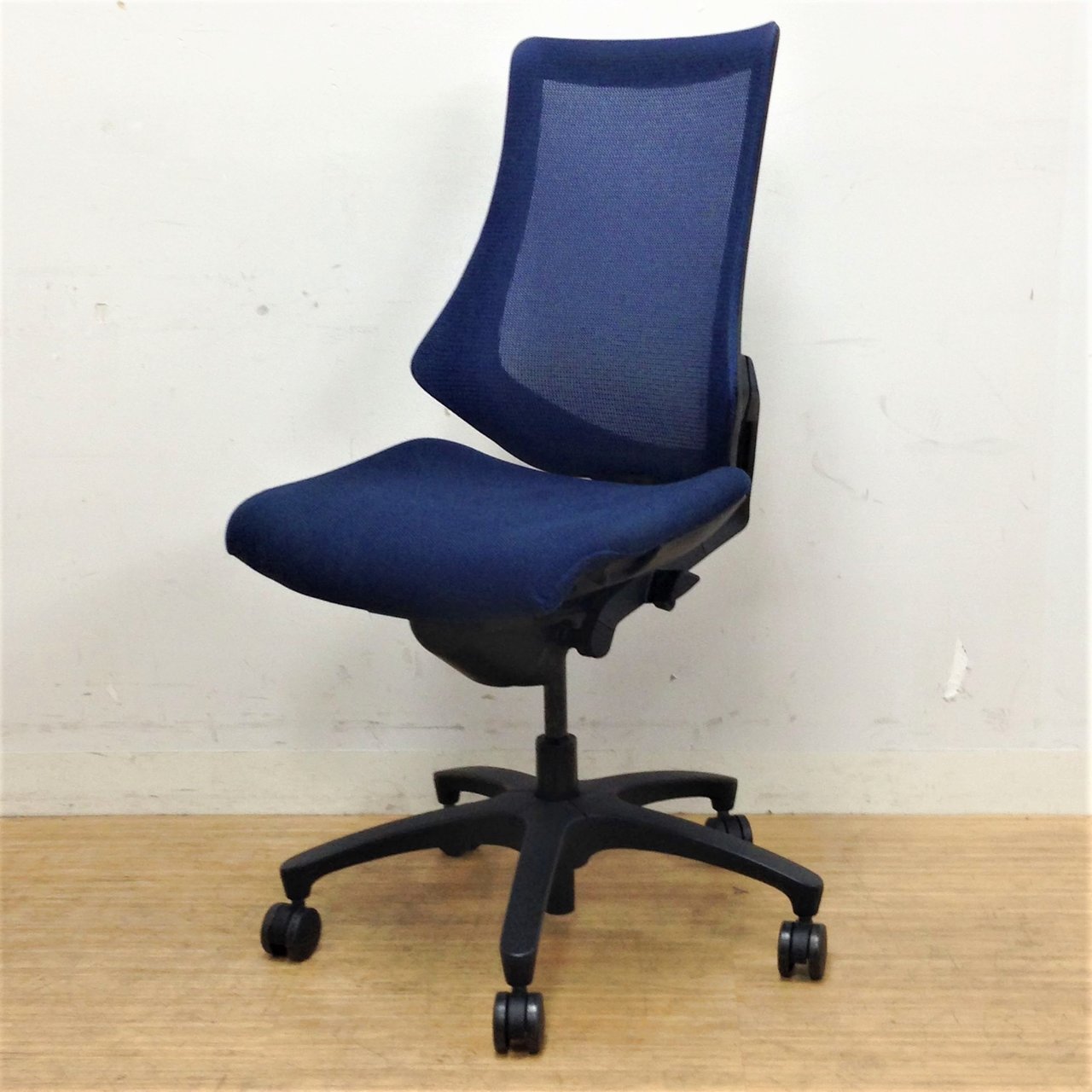 【姿勢の変化にフレキシブルに対応!座り心地も抜群な高機能チェア!】■イトーキ(ITOKI)製 エフチェア 肘無しハイバック クロスバックタイプ ■ネイビーブルー×ブラックシェル〈岐阜・愛知・三重・静岡・福井〉