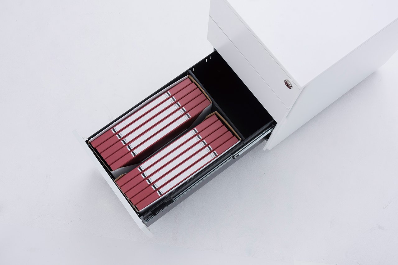下段には仕切板2枚付きで、A4ファイルが収納可能です。