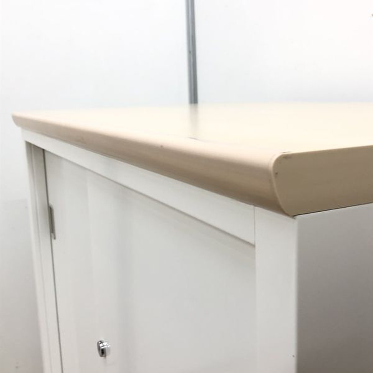 明るいホワイトのカウンターに、木目の天板仕様の商品です。