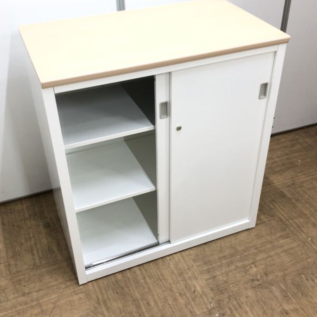- 一部不具合あり天板歪み、引出開閉不可、アジャスター無し、施錠不可のようにそのカウンターの本来の効用を果たすための機能以外の一部が使用不可な状態。(例、引出が 開閉しづらい等がある。)