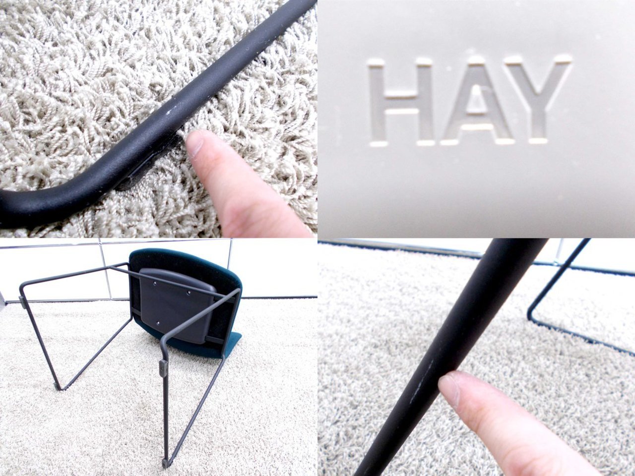 - 目立つ箇所あり傷・破れ・ほつれ・へたり・しわが多数または深い傷・破れ・ほつれ・へたり・しわが一部ある。※座面・背もたれ、シェル、脚部等にある。