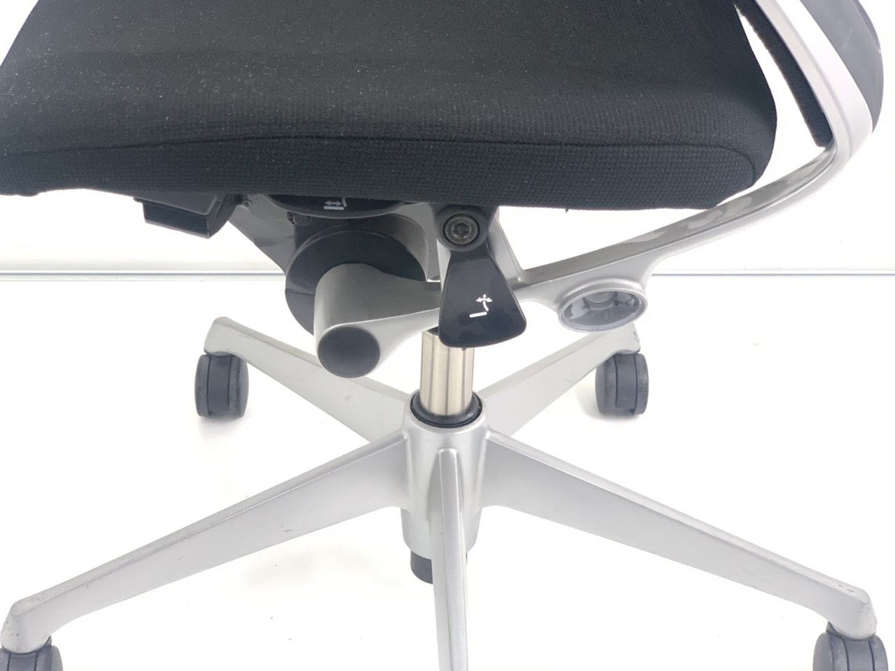 - 座面の右下にあるレバーの操作により座面位置を上下に100mm分調整することが可能です。