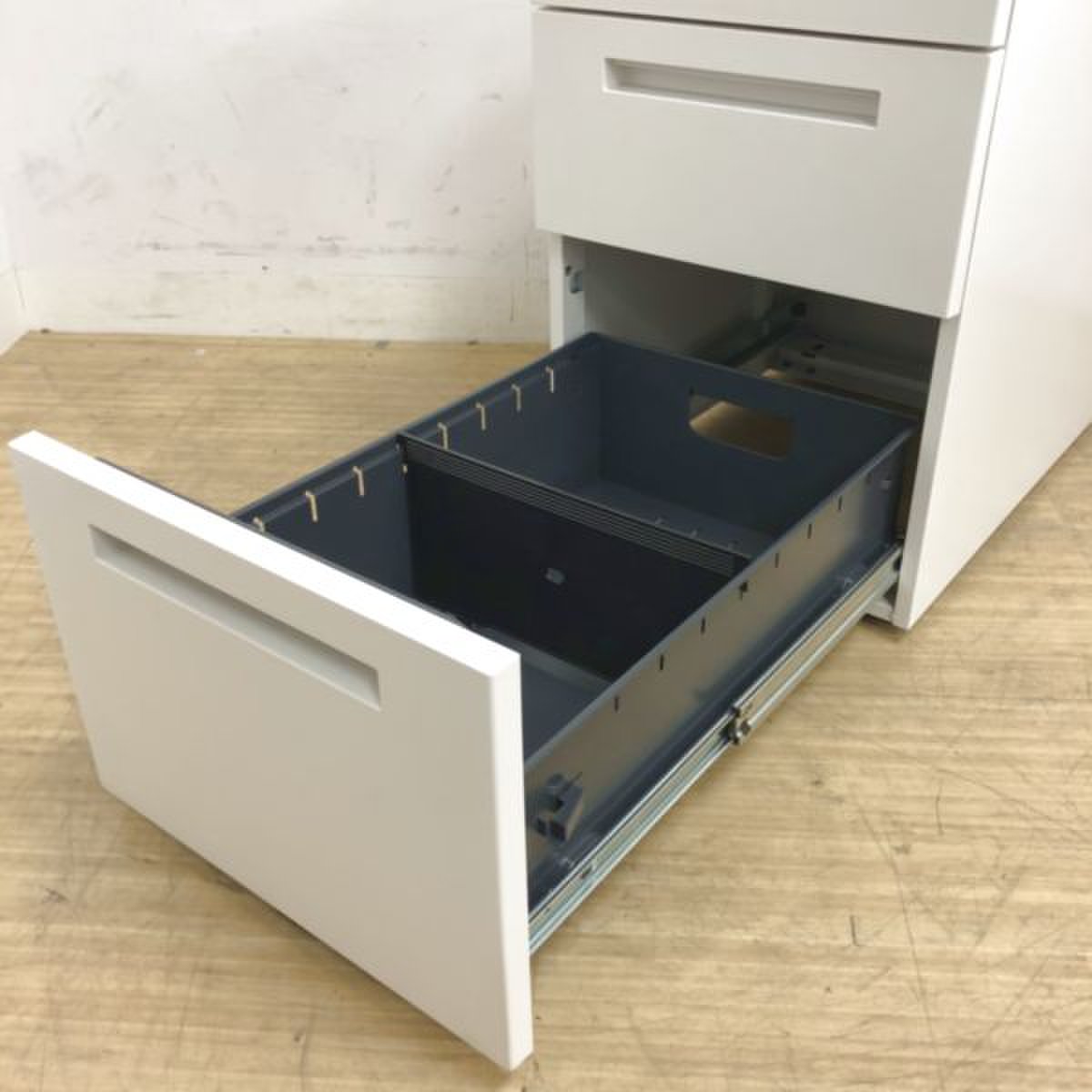 - 一部不具合ありその脇机・ワゴンの本来の効用を果たすための機能以外の一部が使用不可な状態。(例、引出が開閉しづらい、 キャスターロック機能使用不可、ラッチ不良 等がある。)