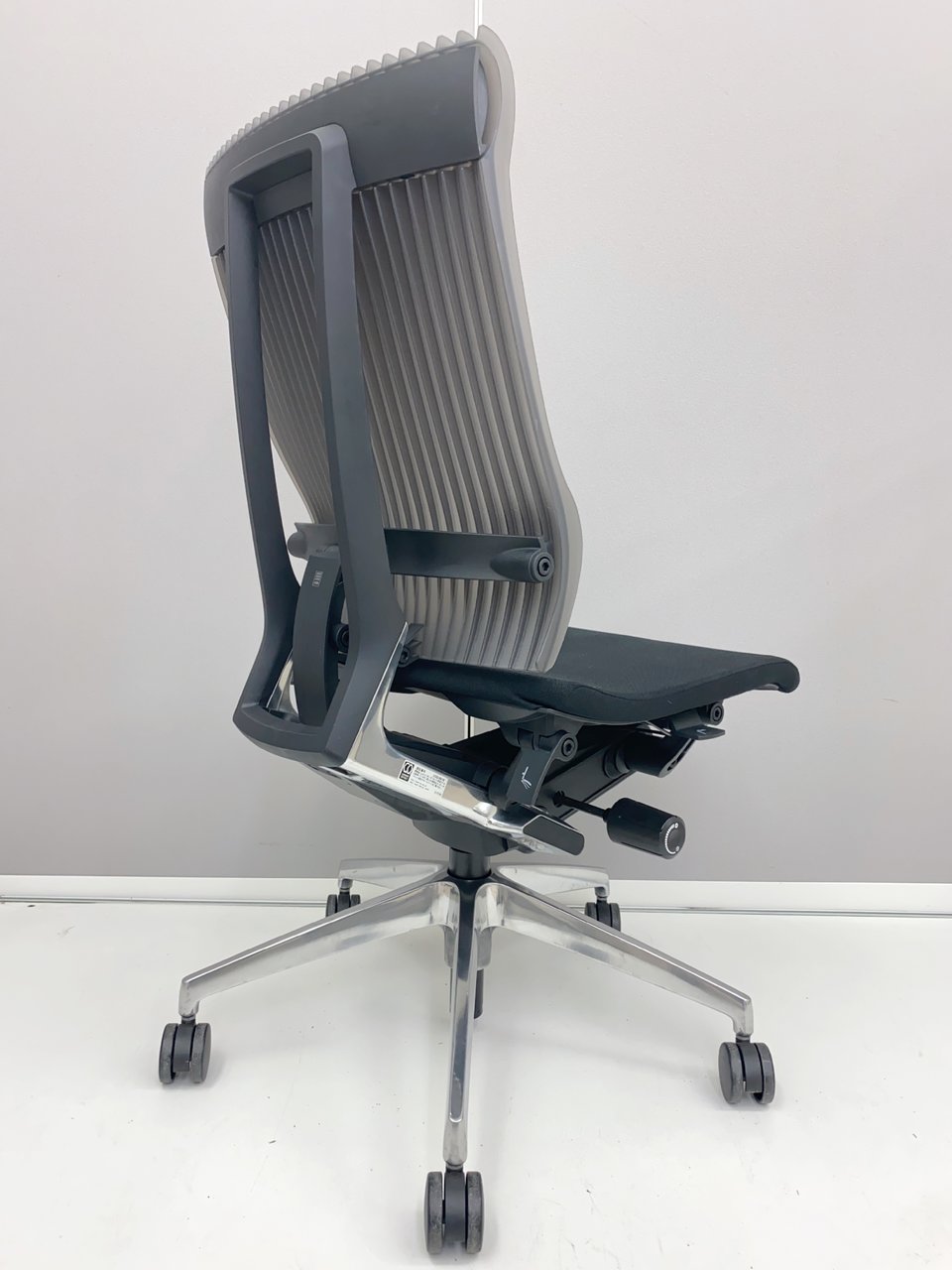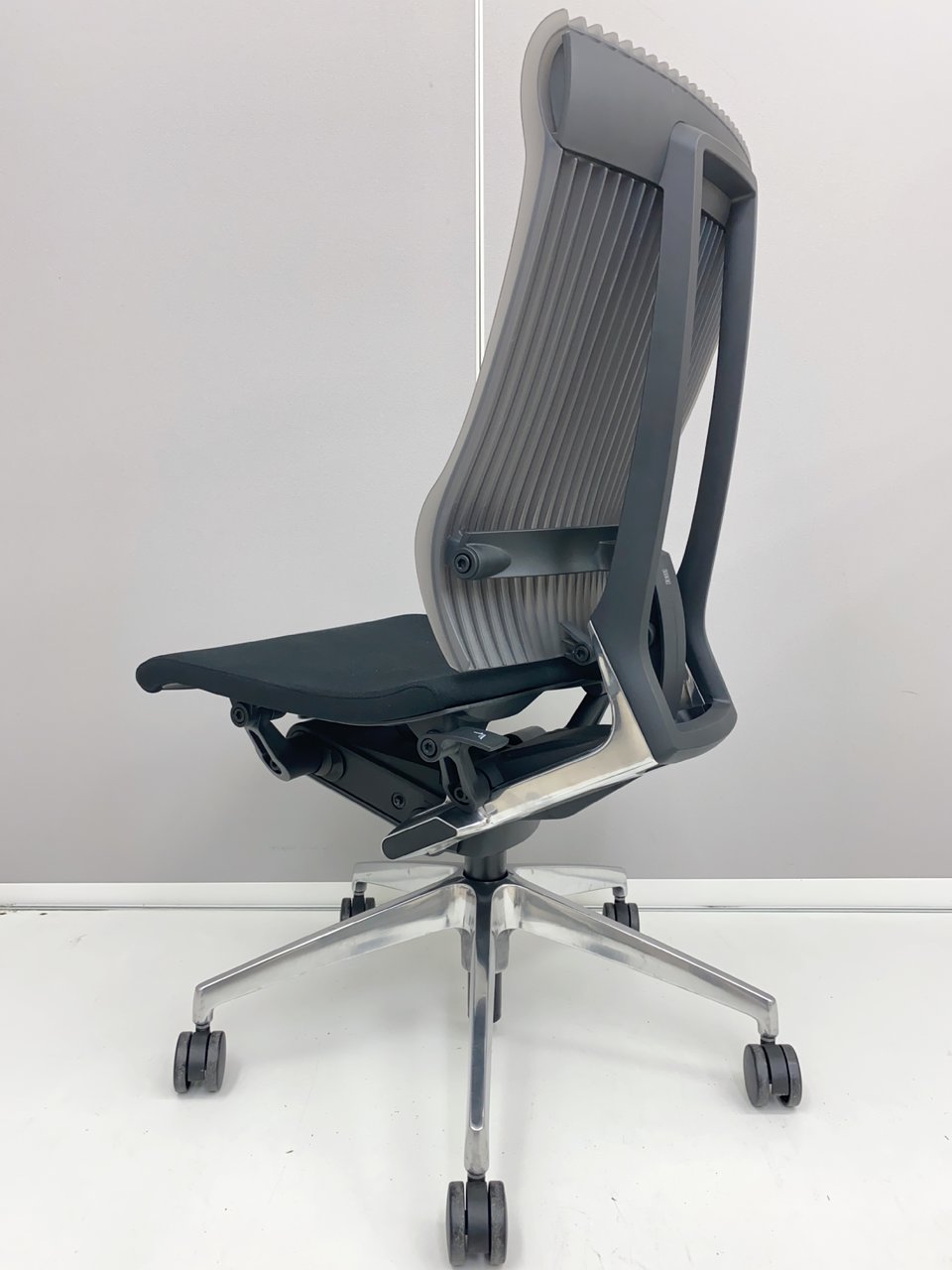 一番の特長は、着座時にチェアがピタっと体にフィットしてくれることです。 人がチェアの座り心地を調節するのではなく、チェアが人に合わせて動くのです!着座時に座面が沈み込みながら後方へスライドし、それと同時に背もたれの腰部分が前にせり出し、「ずっと座っていたくなる」と言われるほどの座り心地に調節してくれます。それを実現しているのが、A.L.S(アクティブ・ランバー・サポート)機構とP.S.S(パッシブ・スライド・シート)機構です。 さらに、背もたれにかかる体圧を徹底的に分析して作られた絶妙なカーブが、常に腰をサポートしつつ背骨のラインに沿ってくれます。