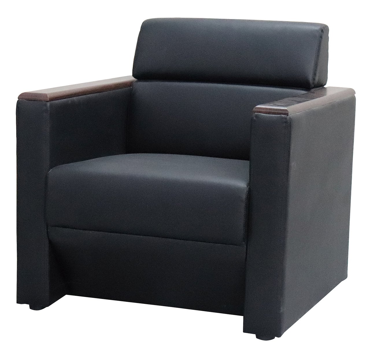 【1人掛け】シンプルソファでも肘の部分がウッド調で高級感を演出します。- 全店共通商品