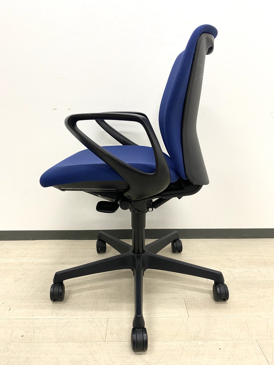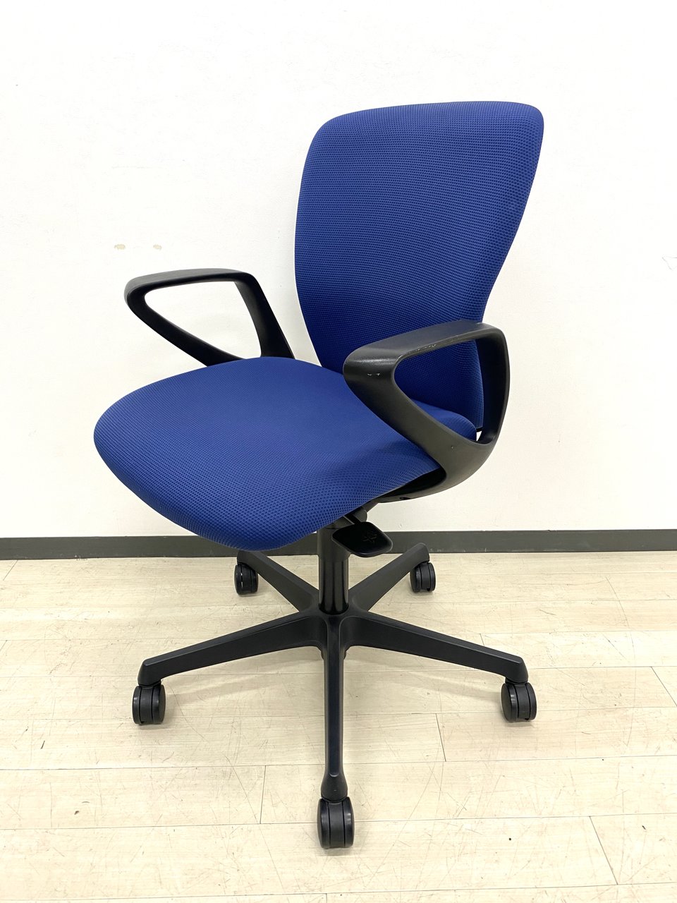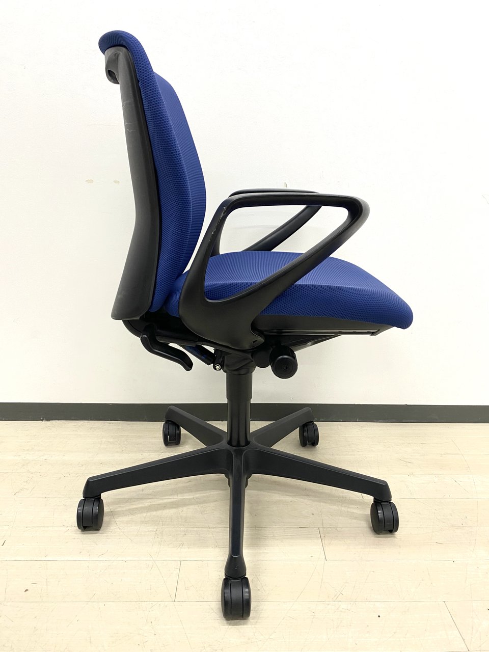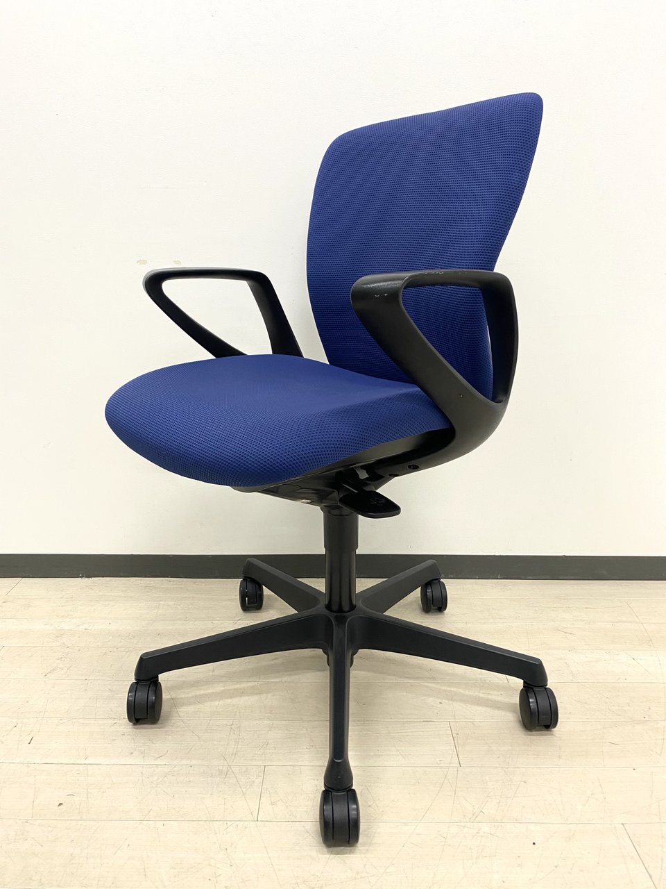 オカムラ製スラートチェア!! 固定肘付き!ブルーの座面!長時間座っても疲れにくい!!- つくば店