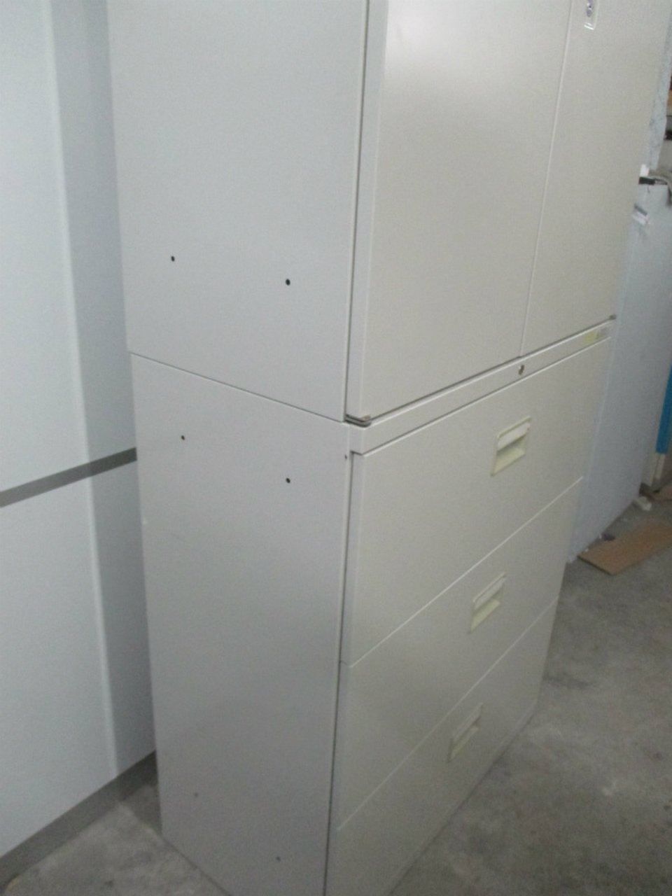 - 一部不具合ありそ引出の開閉不可、施錠不可、棚板無しといったの書庫の本来の効用を果たすための機能以外の一部が使用不可(例、扉、引出の開閉がしづらいなどがある。 )
