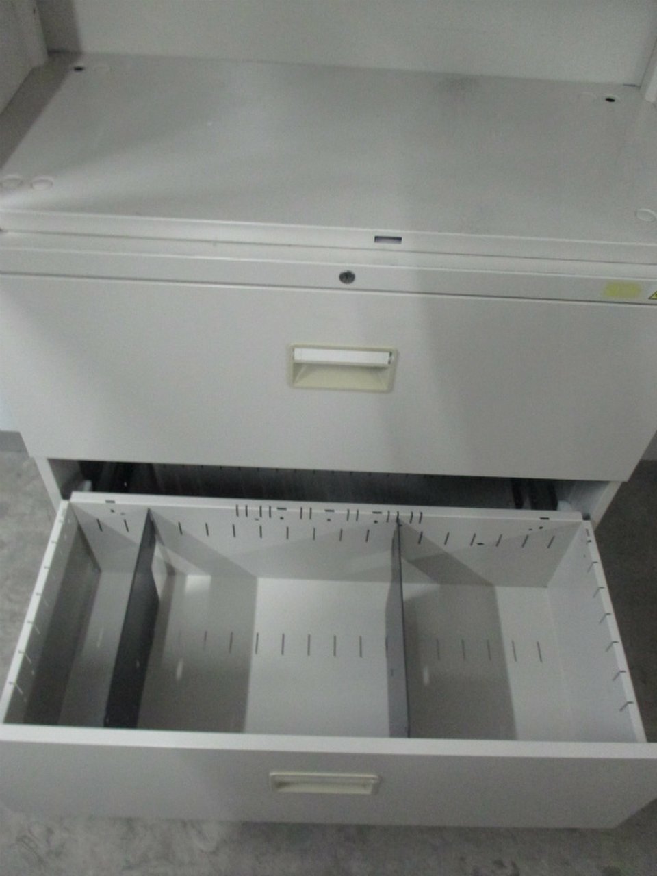 - 多数不具合あり引出の開閉不可、施錠不可、棚板無しといったその書庫の本来の効用を果たすための機能以外の多数が使用不可(例、扉、引出の開閉がしづらいなどがある。 )