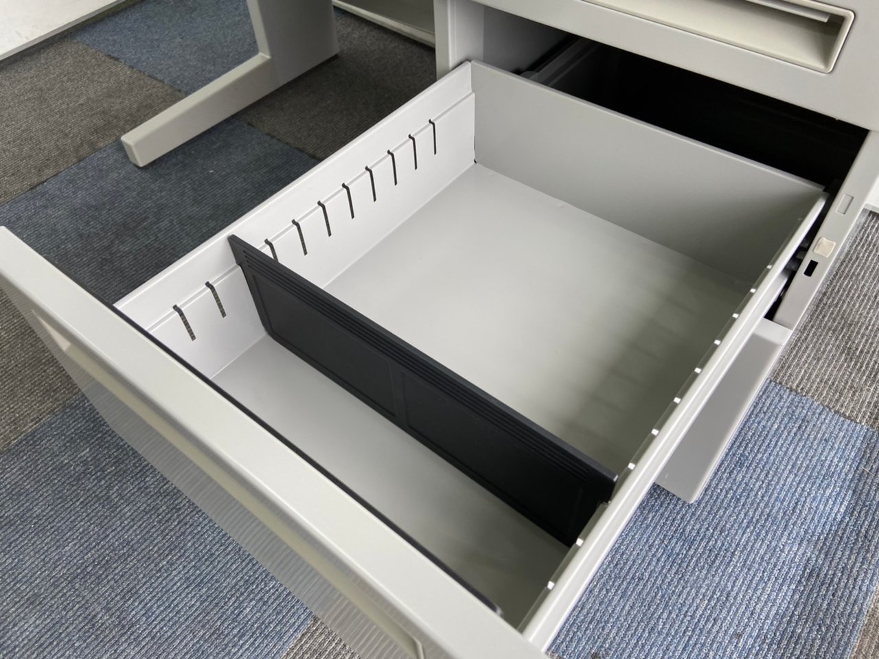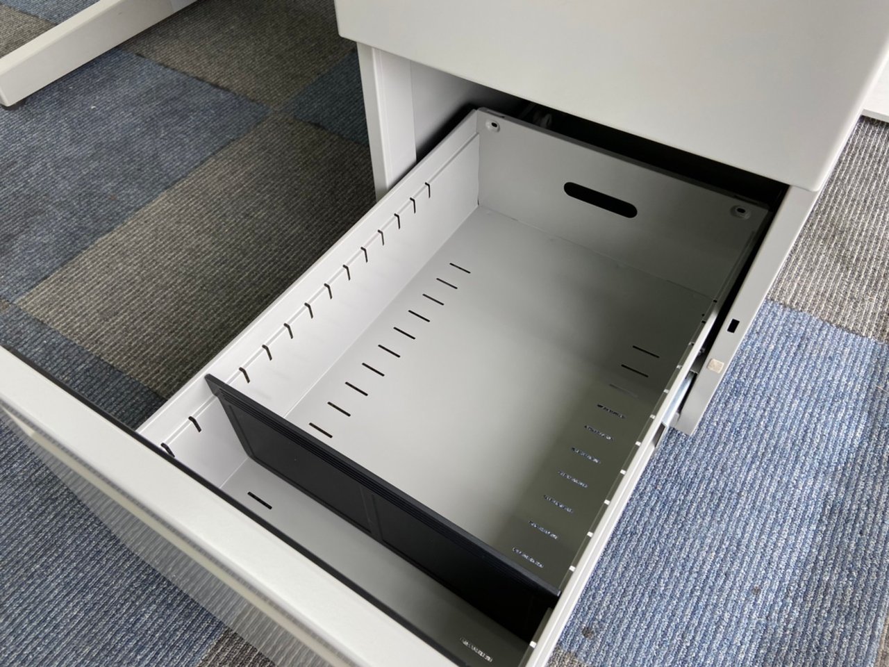 - シンプルながらも使いやすい工夫があります。ロックは、一度の施錠ですべての引出しの鍵がかかるオールロック機構。