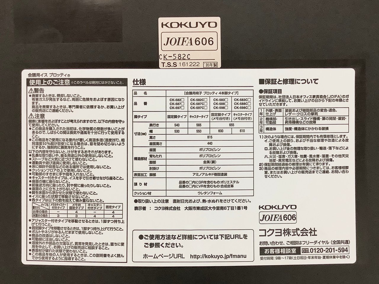 国内メーカーコクヨ製のスタッキングチェアが入荷!