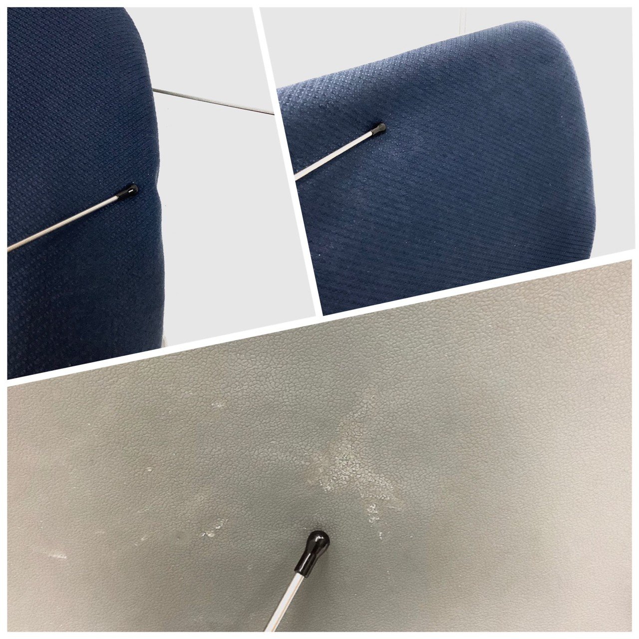 - あり黄ばみ・変色が広い範囲にうっすらある、または濃い黄ばみ・変色が一部ある。(例、座面・背もたれ、脚部等にある。)