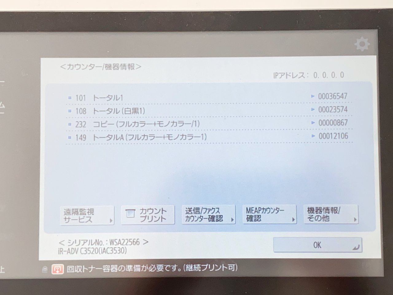 【カウンター数5万枚以下】起業・拠点開業にどうぞ!キヤノン製複合機春日部入店!な・なんと新しい!ADVC3520- 春日部・越谷店