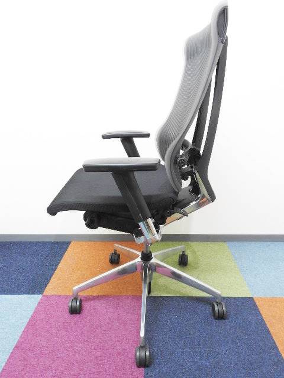 一番の特長は、着座時にチェアがピタっと体にフィットしてくれることです。 人がチェアの座り心地を調節するのではなく、チェアが人に合わせて動くのです!着座時に座面が沈み込みながら後方へスライドし、それと同時に背もたれの腰部分が前にせり出し、「ずっと座っていたくなる」と言われるほどの座り心地に調節してくれます。それを実現しているのが、A.L.S(アクティブ・ランバー・サポート)機構とP.S.S(パッシブ・スライド・シート)機構です。 さらに、背もたれにかかる体圧を徹底的に分析して作られた絶妙なカーブが、常に腰をサポートしつつ背骨のラインに沿ってくれます。