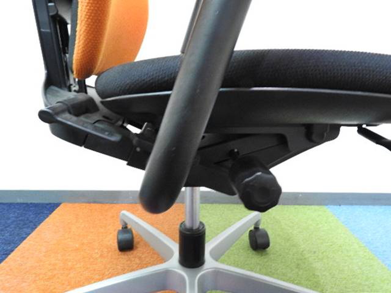 重さは、オフィスチェアの中ではかなり軽量なため、取り回しも良く、チェアを移動することが多いシーンに適しています。 カラーはシンプルなブラックが人気ですが、ブルーやオレンジ、グリーンなどの爽やかなカラーモデルも、圧迫感がなく、空間を広く見せてくれるのでオススメですよ!