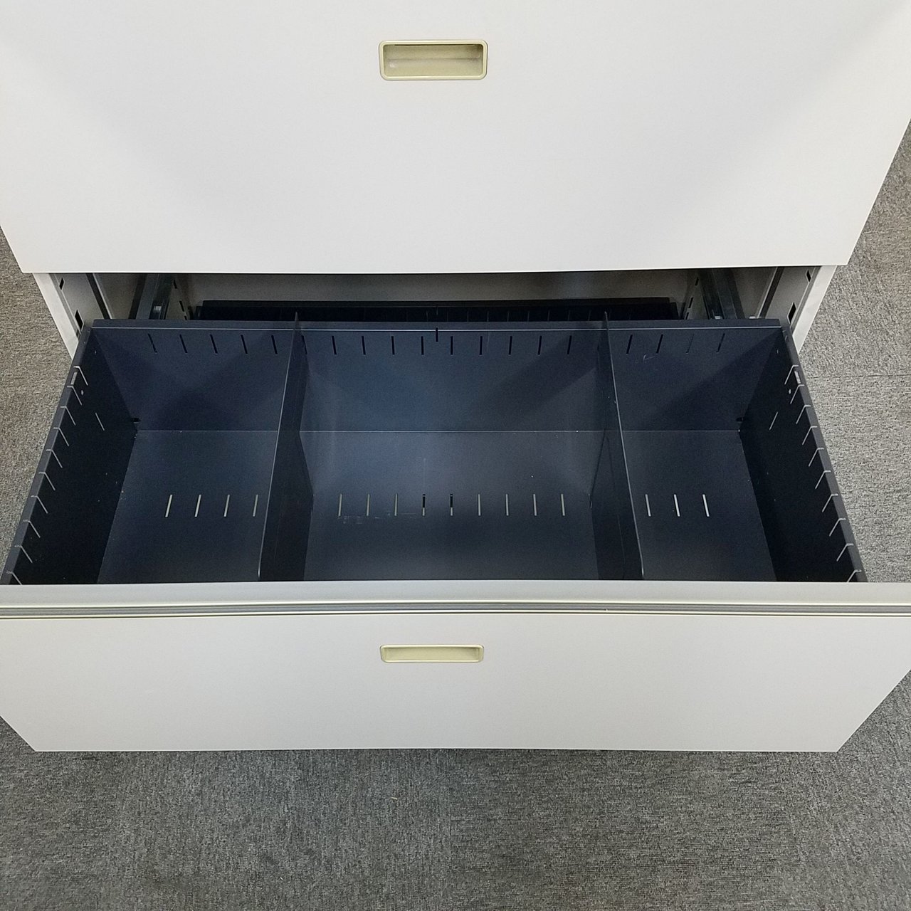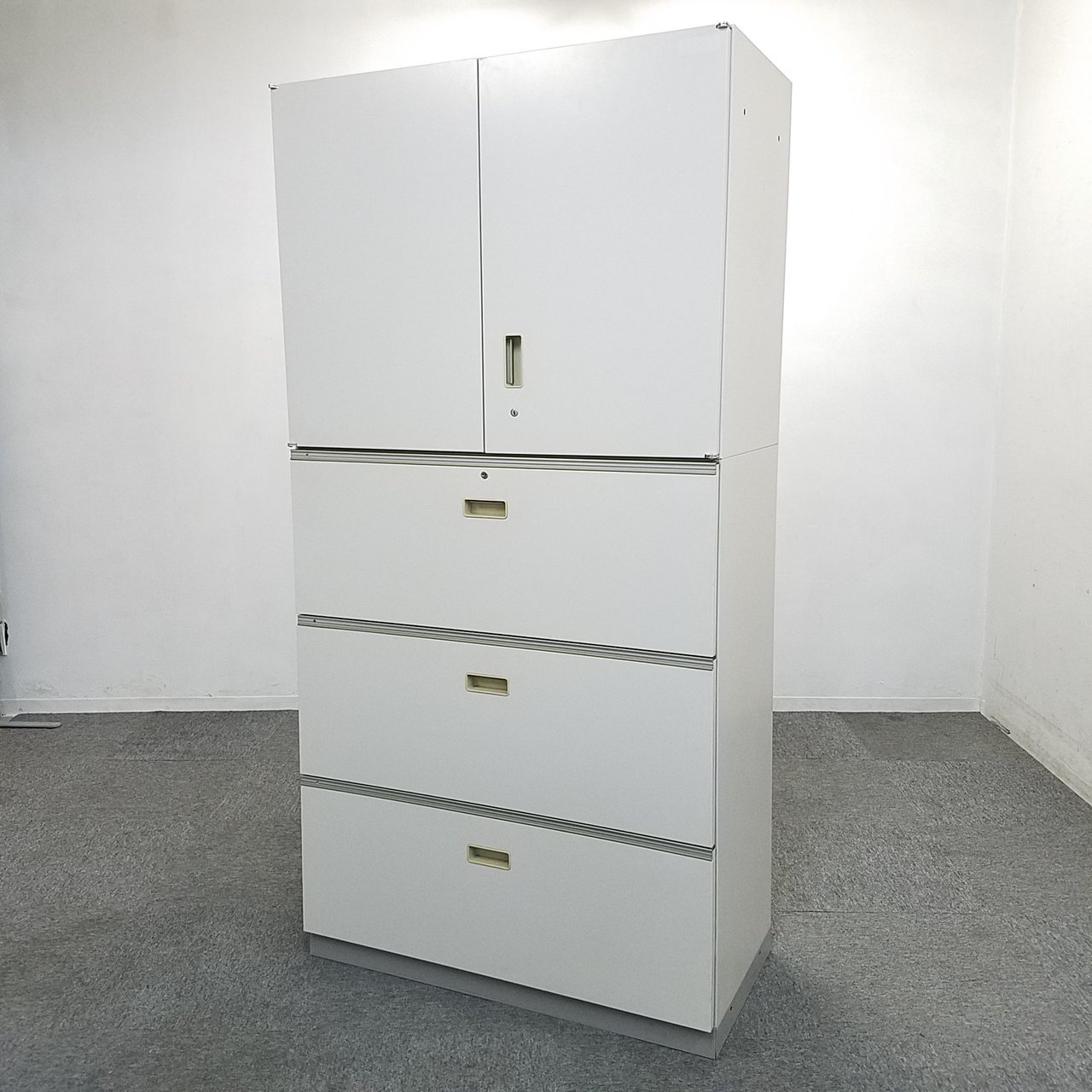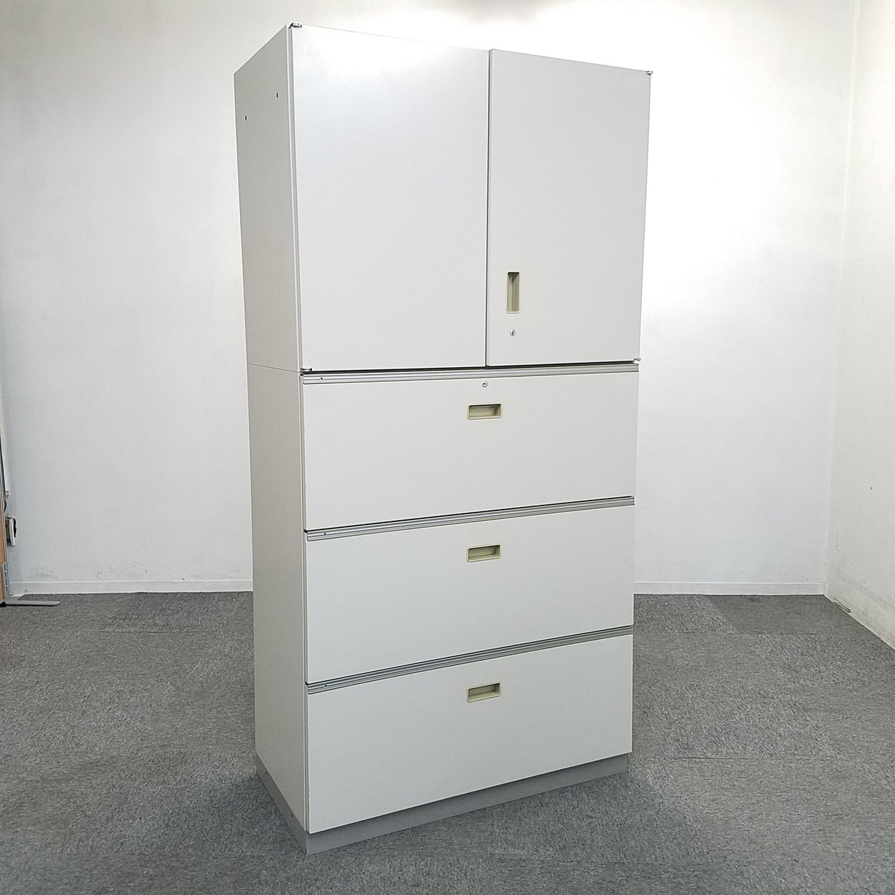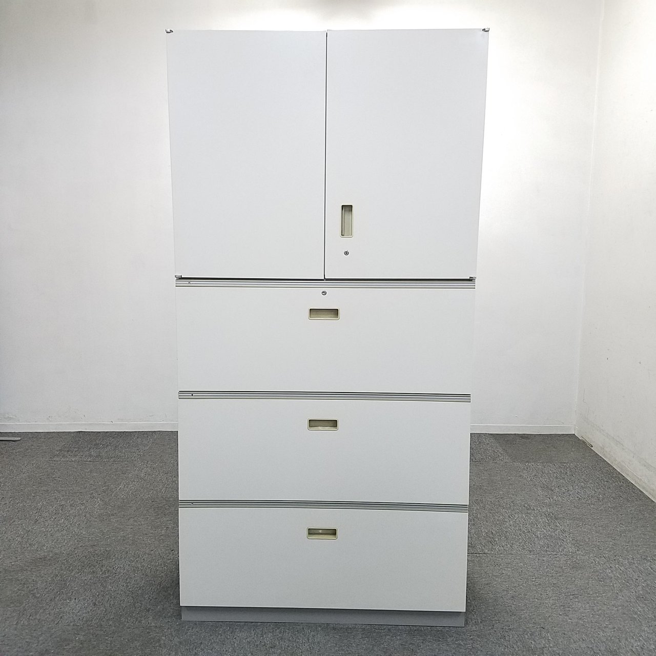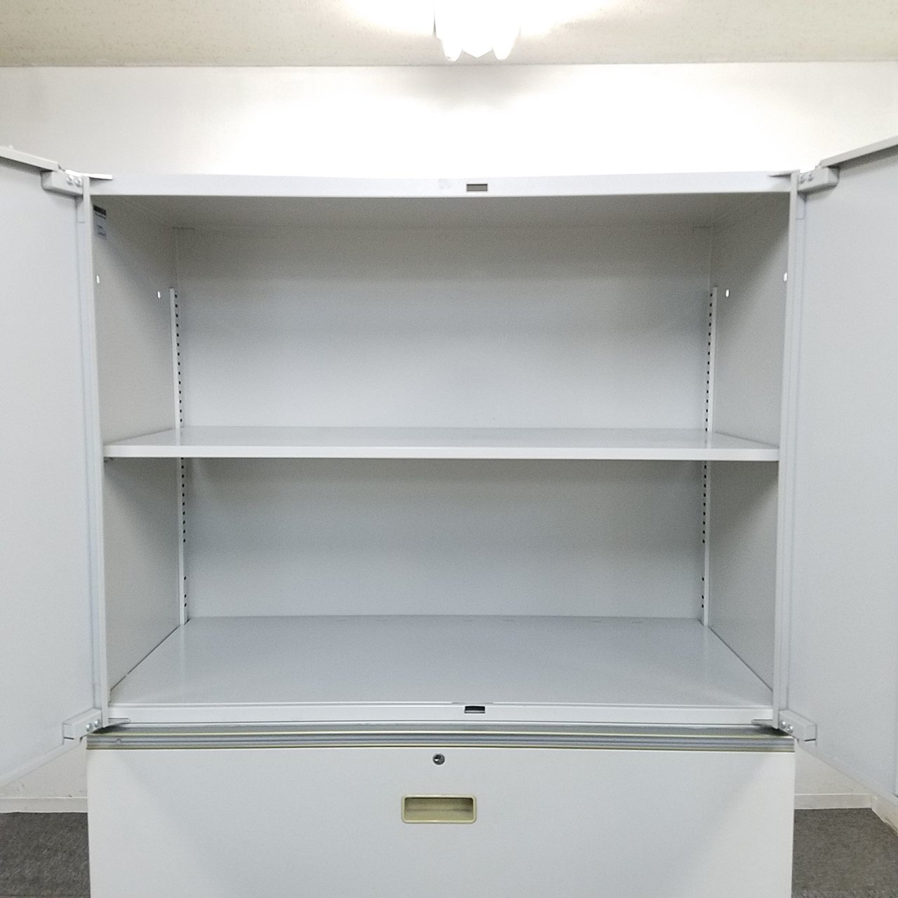 - 一部不具合ありそ引出の開閉不可、施錠不可、棚板無しといったの書庫の本来の効用を果たすための機能以外の一部が使用不可(例、扉、引出の開閉がしづらいなどがある。 )