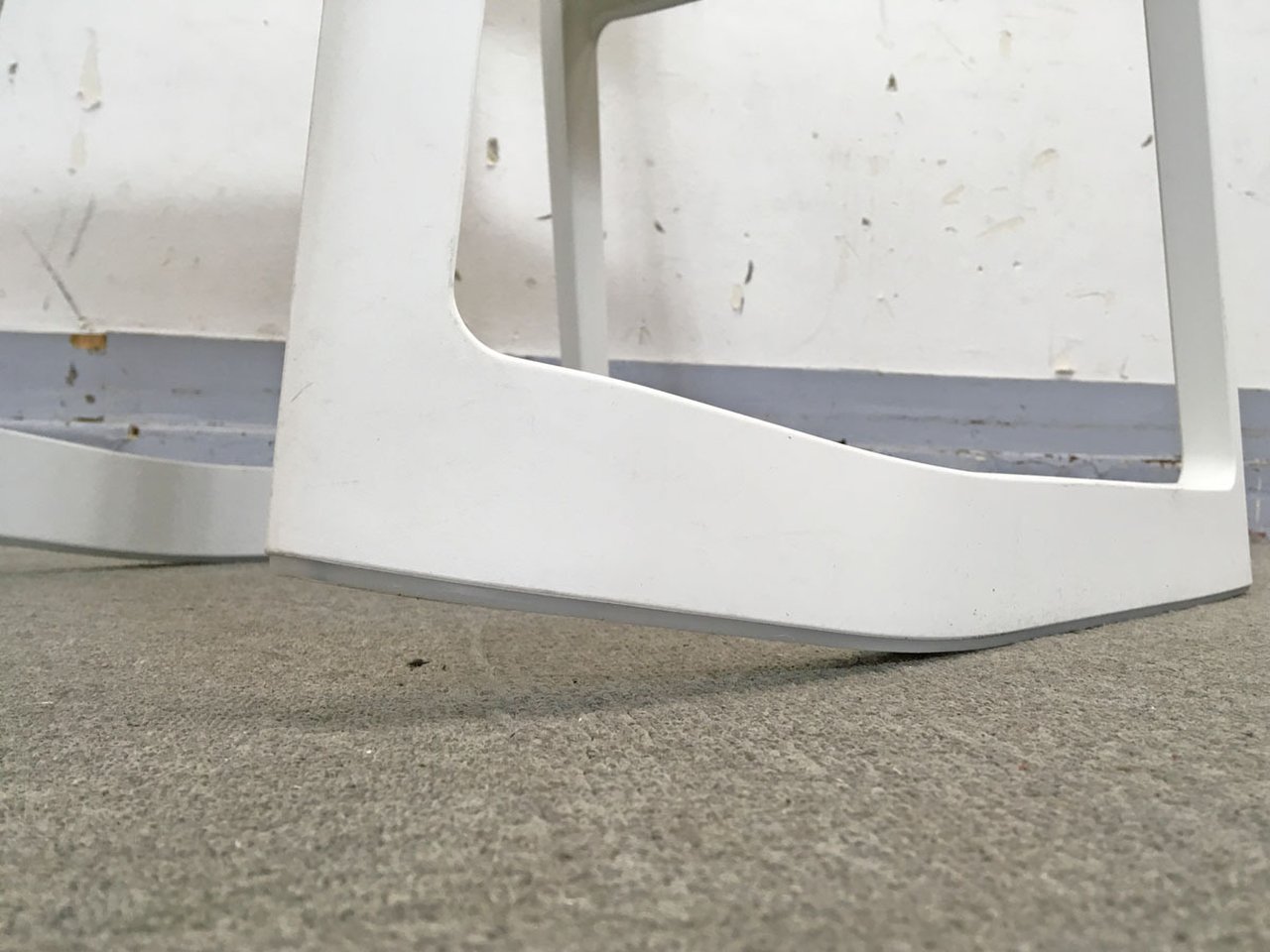 - かなり強い濃い黄ばみ・変色が商品全体にある。(例、座面・背もたれ、脚部等にある。)